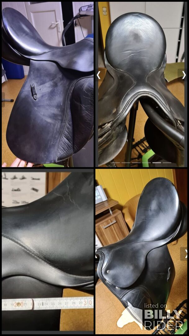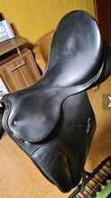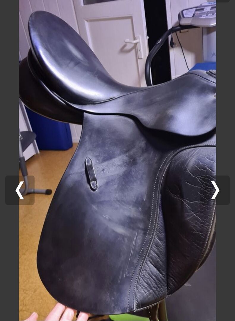 Siodło ujeżdżeniowe - Siodło ujeżdżeniowe w dobrym stanie, z krótką klapą i paskiem do popręgu, odpowiednie dla małych koni lub koni o krótkich grzbietach. Odbiór w Burgthann lub Leinburg. Możliwa wysyłka za dodatkową opłatą
