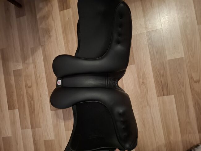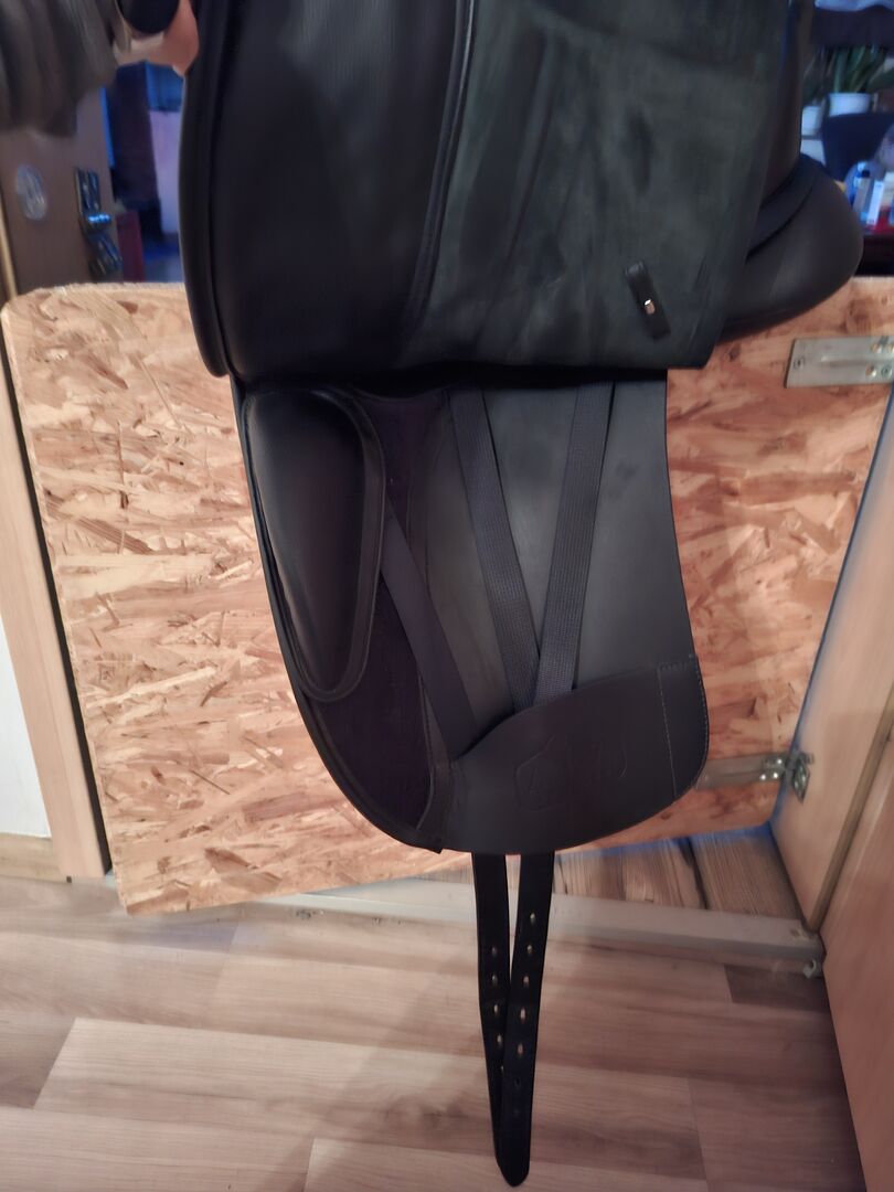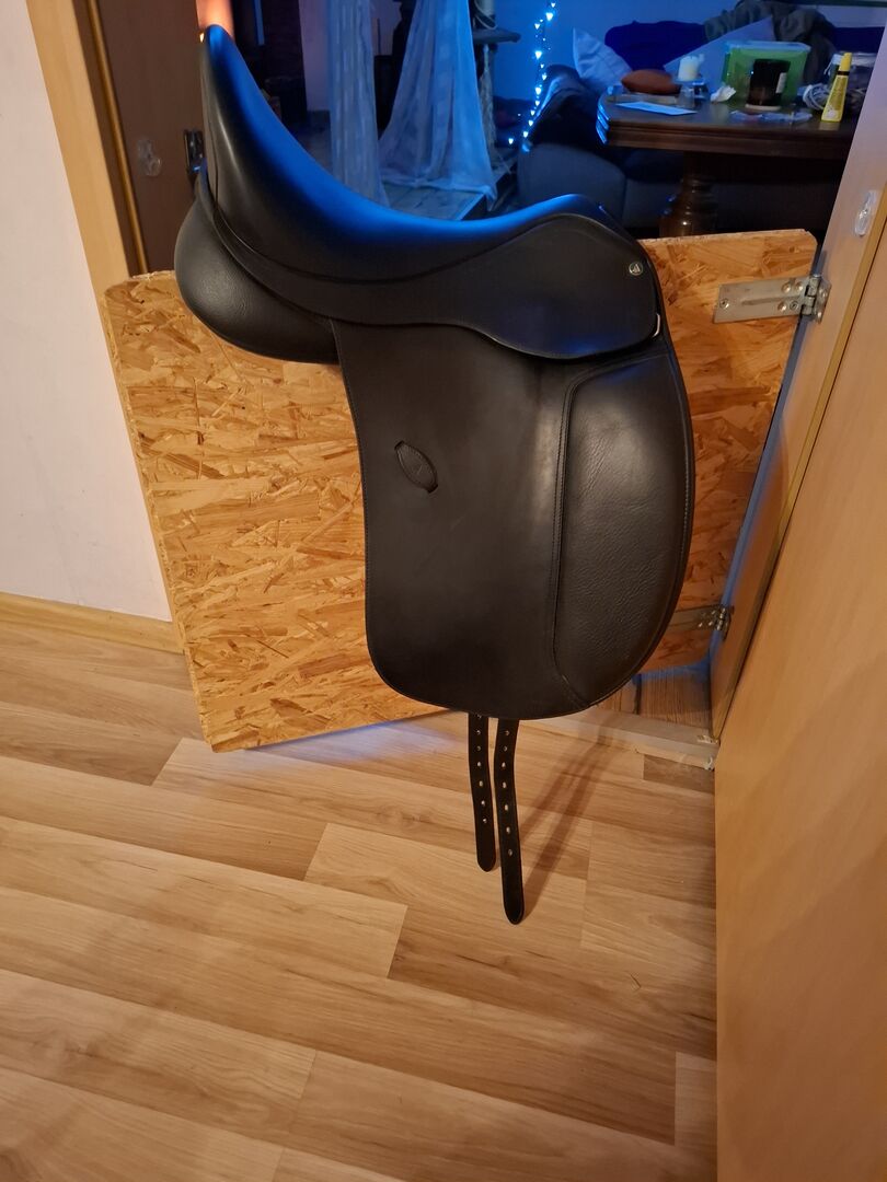 Siodło ujeżdżeniowe - Sprzedaję moje siodło ujeżdżeniowe, które kupiłem nowe 23/06/2025, urosło tylko 5 miesięcy w użyciu iw ciągu 5 miesięcy zauważyłem, że moja klacz nie dogaduje się z siodłem. Siodło jest marki Arena patrz zdjęcie. Siodło ma płytę wpustową w kolorze białym wewnątrz i czarną płytę wpustową, którą nadal mam do siodła, biała płyta wpustowa jest bardzo szeroka, a czarna ma rozmiar siedziska M 17,5, siodło ma długość 44 cm. Faktura i wszystkie informacje o siodle znajdują się na fakturze, którą załączyłem jako zdjęcie. Brak gwarancji i zwrotów