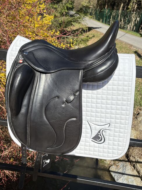 Siodło ujeżdżeniowe 3S Bentley St.Michael - Sprzedam moje bardzo dobrze zachowane siodło ujeżdżeniowe 3S, model St. Michael, drzewo KS, siedzisko 17'', stałe rolki kolanowe. Kupiłem je we wrześniu 2023 roku i nie używałem od sierpnia 2025 roku.