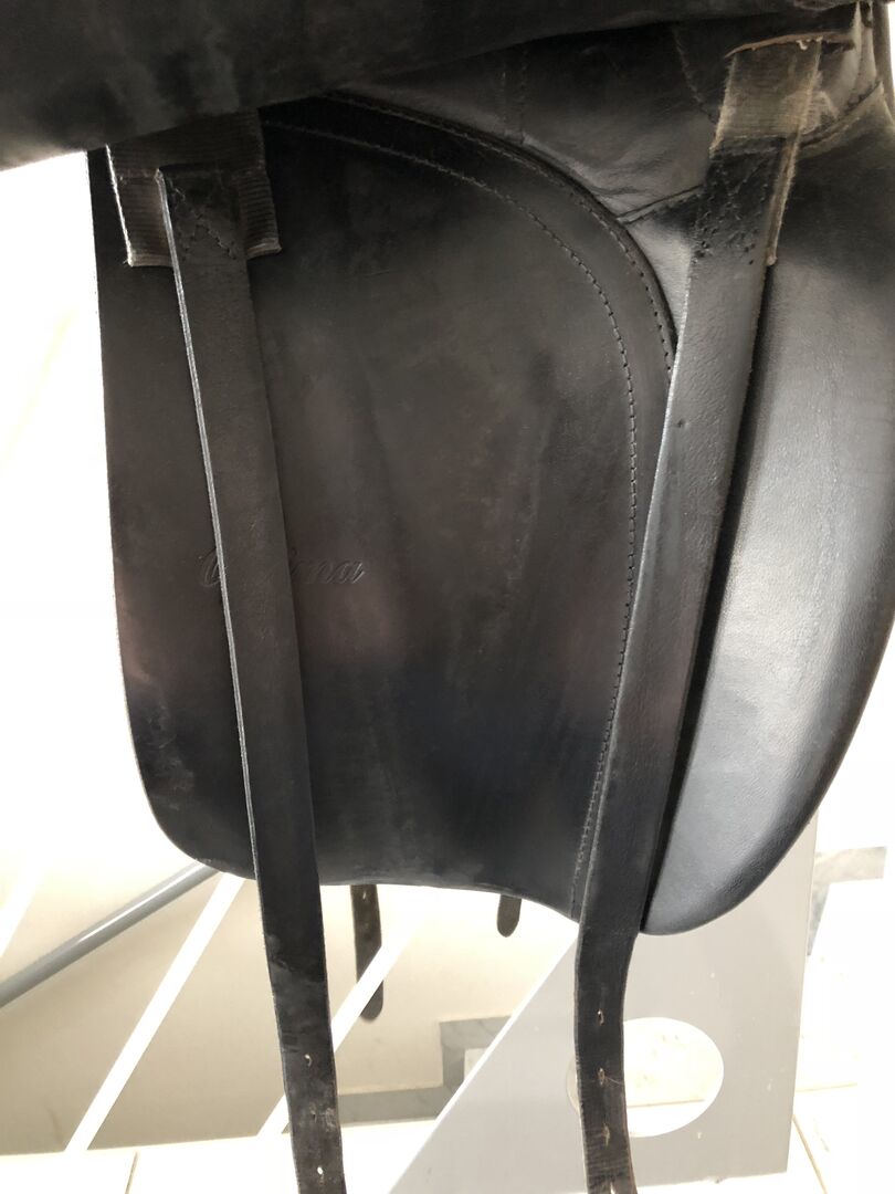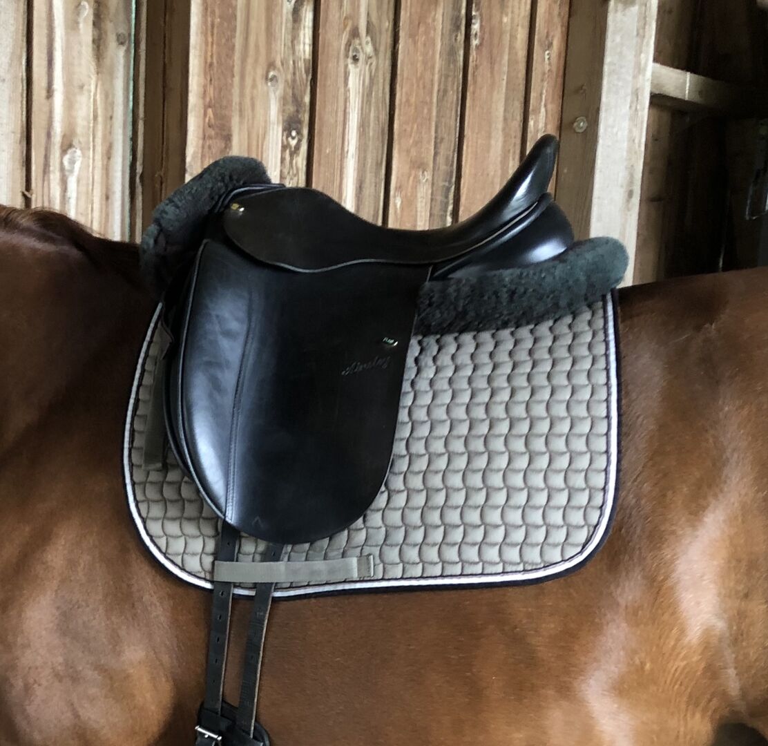 Siodło ujeżdżeniowe Ainsley wyściełane powietrzem - Sprzedam siodło ujeżdżeniowe Ainsley ze zintegrowanymi panelami powietrznymi, które są świetne dla koni, które lubią zmieniać grzbiet. Komorę można zmieniać ręcznie, dzięki czemu siodło można dopasować do prawie wszystkich koni. Siodełko ma 17'.