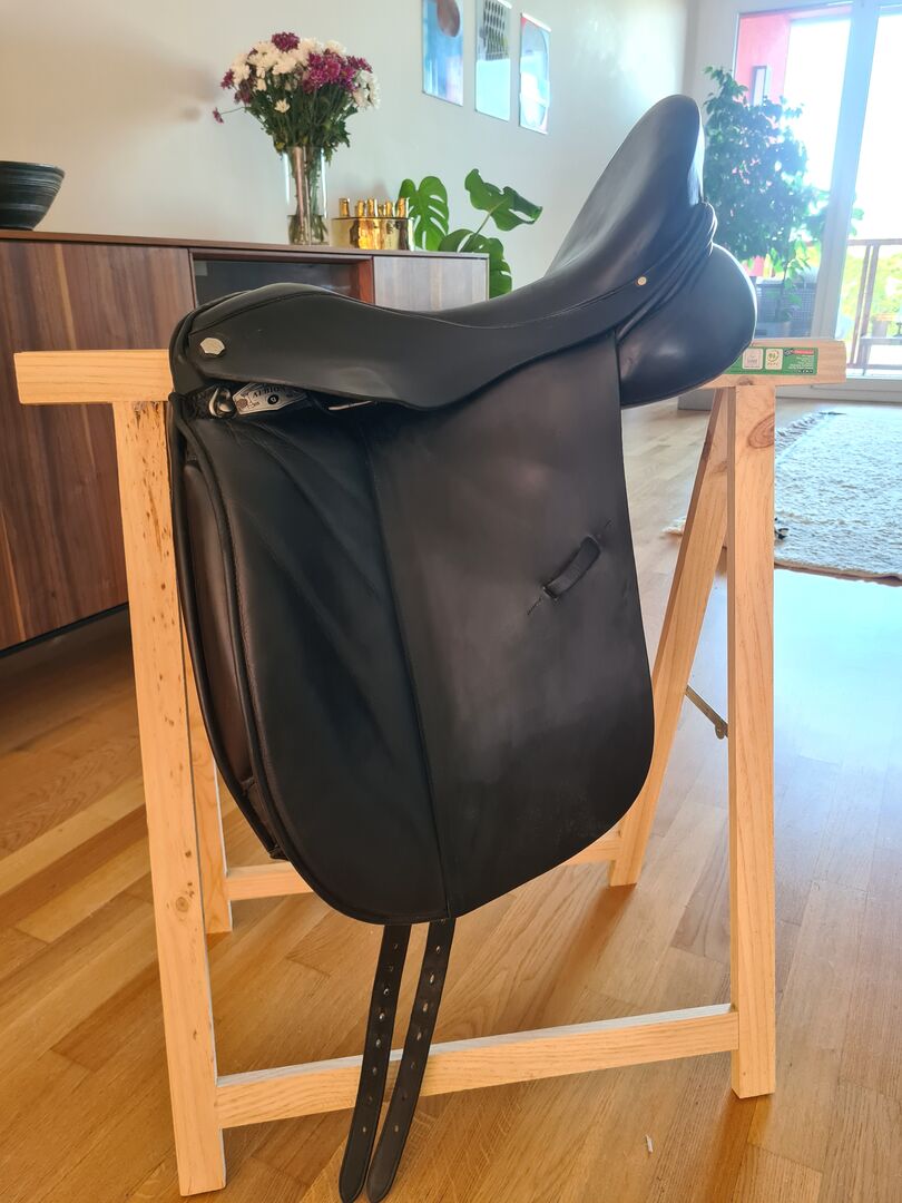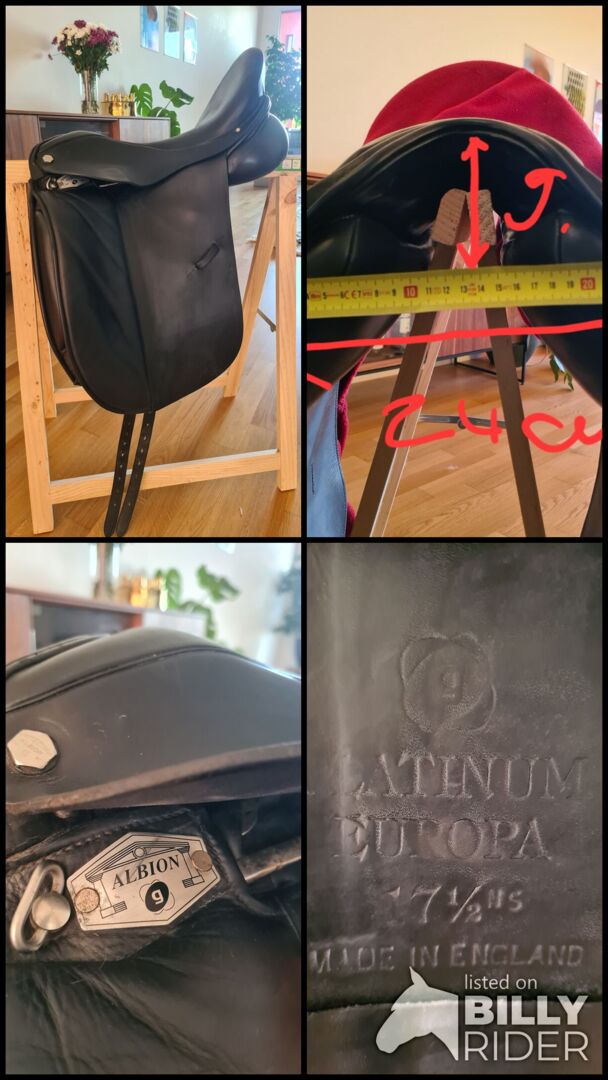 Siodło ujeżdżeniowe Albion 17,5" - Sprzedaję moje bardzo ładne czarne siodło ujeżdżeniowe Albion model "Platinum Europa" 17,5". Doskonałe wykonanie, bardzo ładna gruba, miękka skóra i siedzisz głęboko i z długą nogą w siodle, co jest typowe dla Albion, a płyta wpustowa jest regulowana. Siodło ma 3 opcje pasków do popręgu, więc istnieje również opcja przedniego paska do popręgu, jeśli koń ma mały kłąb i siodło w przeciwnym razie zsunęłoby się do przodu. Siodło było ostatnio wyściełane dobry rok temu i nie było używane przez około 10 miesięcy, ponieważ nie pasuje do mojego nowego konia. W razie jakichkolwiek pytań proszę o kontakt!