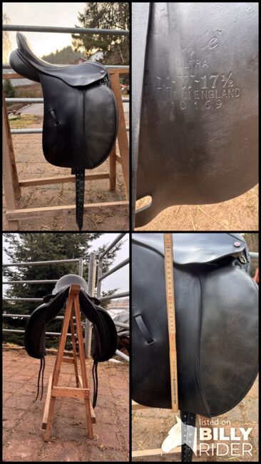 Siodło ujeżdżeniowe Albion - Sprzedaję moje starsze siodło ujeżdżeniowe Albion. Lata temu wymieniłam w nim dwa łęki. Wymiary i stan można zobaczyć na zdjęciach. Zawsze było przechowywane w suchym miejscu i regularnie konserwowane.