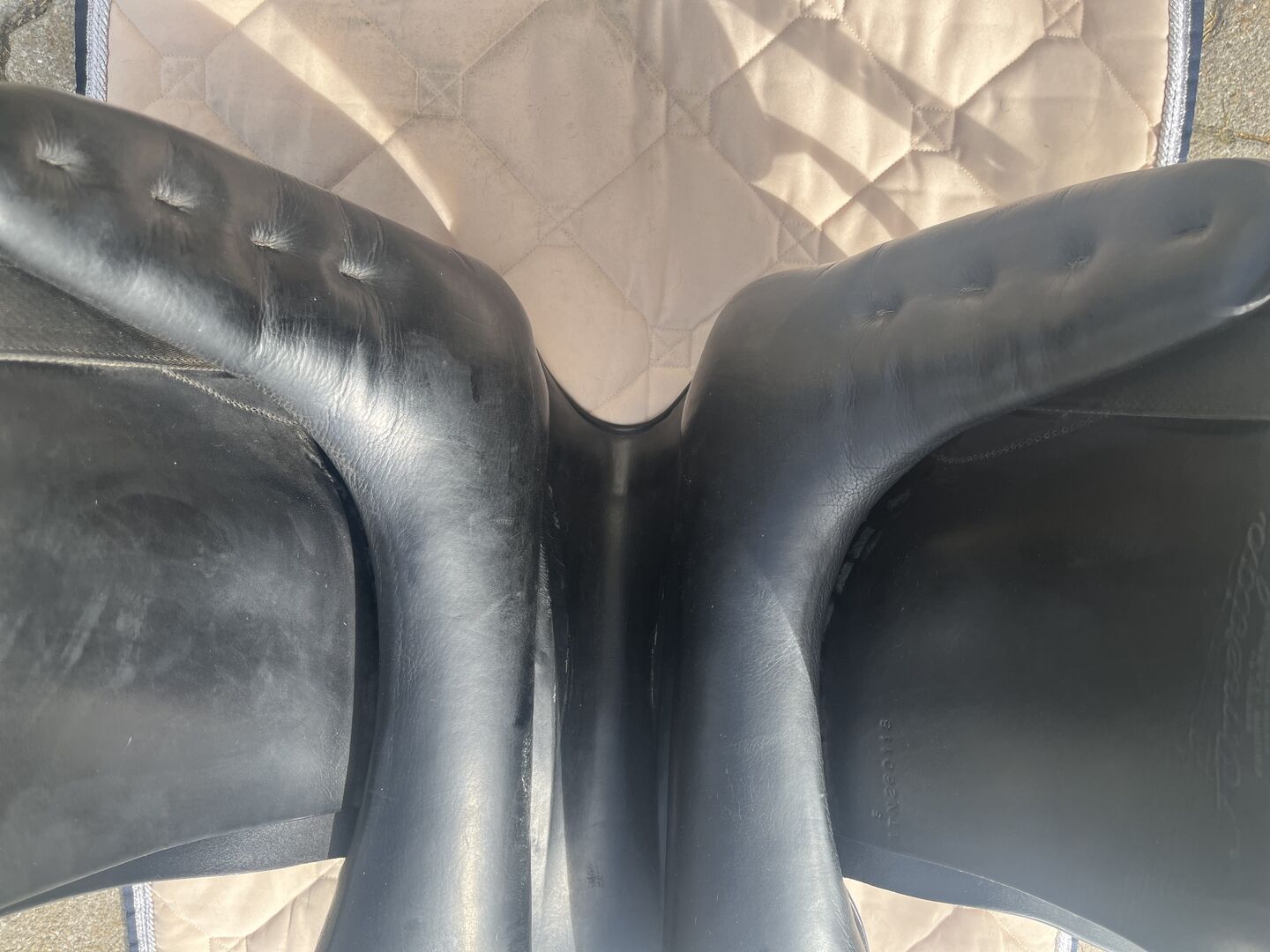 Siodło ujeżdżeniowe Amerigo 17,5 - Sprzedajemy nasze siodło ujeżdżeniowe Amerigo 17.5 z niewielkimi uszkodzeniami, patrz zdjęcia, poza tym w idealnym stanie. Sprzedajemy je, ponieważ nasz nowy koń potrzebuje siodła skokowego.