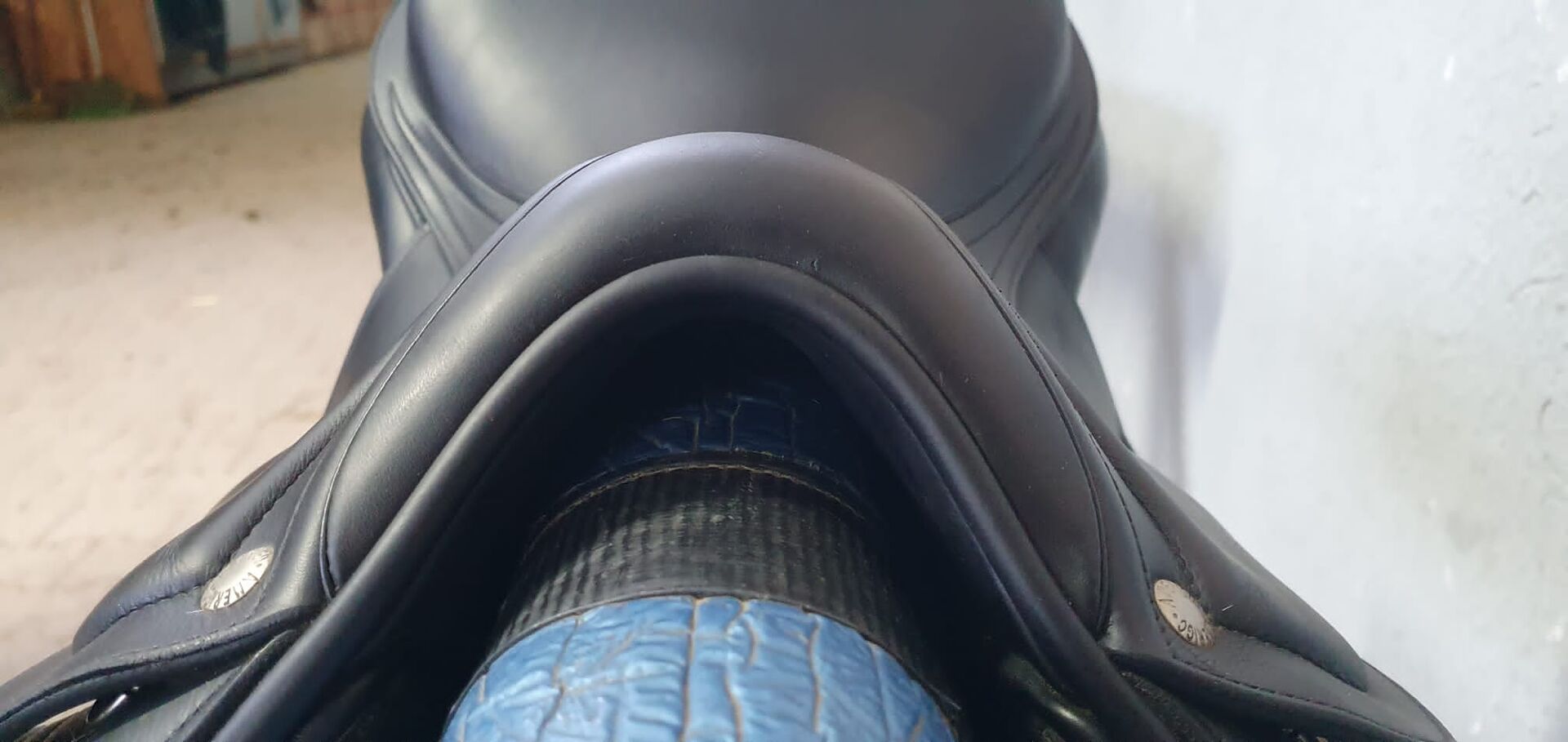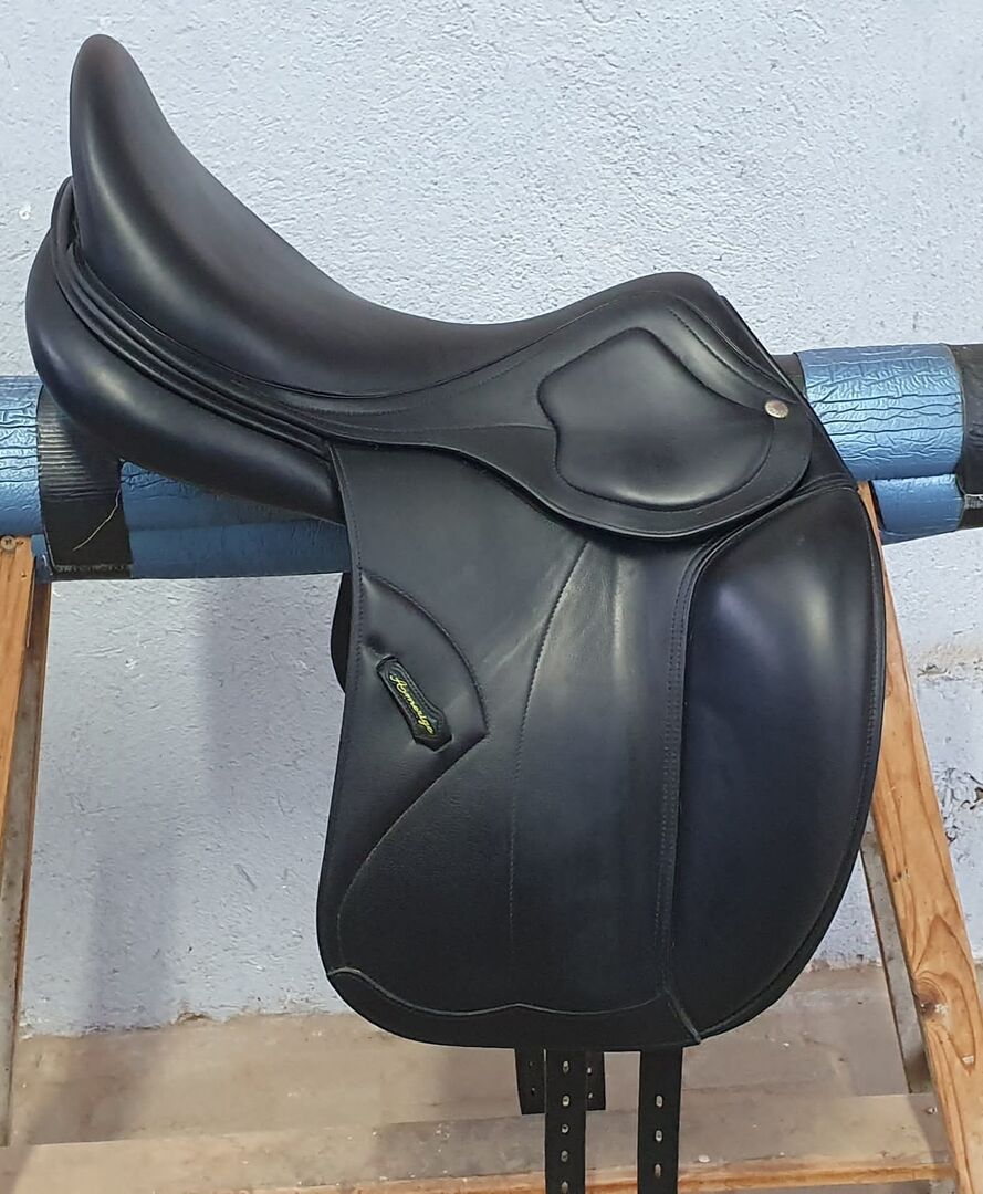 Amerigo Classic Dressage Pinerolo SW na wysoki kłąb i huśtawkę w tył, 17,5". Siodło posiada lekko skróconą klapę siodła, dzięki czemu jest idealne nie tylko dla wysokich jeźdźców, ale również dla krótkich.