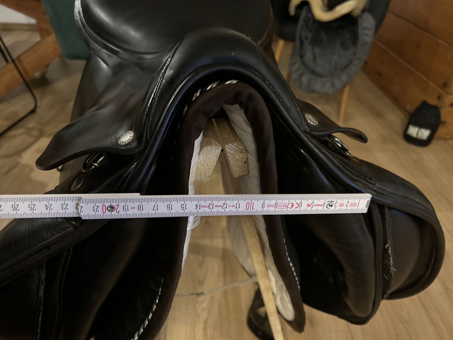 Stan dobry, zarysowania są tylko na jednej klapie siodła. Siodło jest regularnie konserwowane preparatem Stübben Hamanol, a kilka tygodni temu zostało sprawdzone w zakładzie rymarskim. Wyściółka jest dobra i równa.