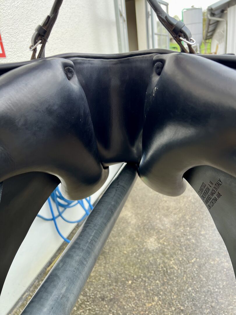 Siodło ujeżdżeniowe Amerigo DR Cortina - Bardzo dobrze utrzymane siodło ujeżdżeniowe Amerigo DR Cortina black w rozmiarze 17 cali na sprzedaż. Z poduszkami Gripeder Pinerolo i rzepami.
