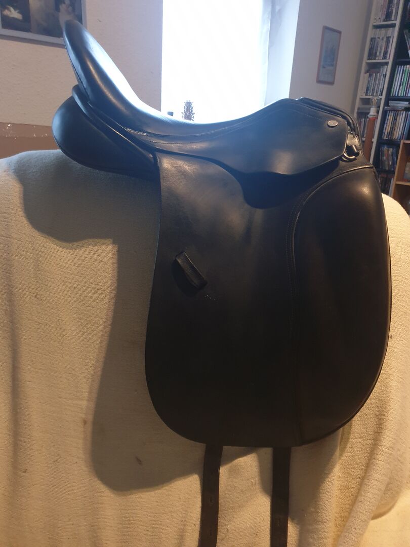Siodło ujeżdżeniowe Ateny - Sprzedam dobrze zachowanego Busse Ateny w 17,5. Siodło zostało zbudowane w 2001 r., więc jest nieco starsze. Szerokość przełyku wynosi 18 centymetrów od przełyku do przełyku. Jego długość wynosi 45 cm. Należy zmienić wyściółkę. Na siedzisku są drobne pęknięcia, ale nie rozwinęły się one z biegiem lat. W jednej z poduszek jest mała dziurka, ale nie stanowi to problemu.
