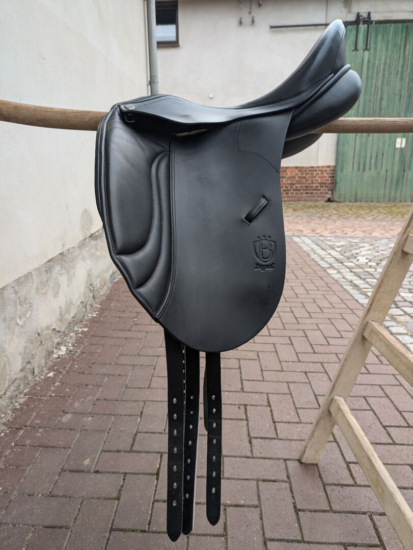 Siodło ujeżdżeniowe Bagual - Witam :) Sprzedaję moje siodło ujeżdżeniowe marki Bagual. Kupiłam je w marcu 2021, nowa cena wynosiła 2100€. Kolor: czarny Wymiary można znaleźć na zdjęciach. Na życzenie mogę wysłać więcej zdjęć. Zawsze dobrze mi służyło, przyjemna miękka skóra i miękka wyściółka. Rolki kolanowe są mocowane na rzepy, dzięki czemu można je dowolnie mocować. W lutym 2024 roku został zamontowany dodatkowy 3 panel i siodło zostało ponownie tapicerowane. W razie pytań proszę pisać. Możliwy odbiór własny i wysyłka. Z pewnością można zorganizować spotkanie testowe między Lipskiem a Dreznem ... Bez odpowiedzialności i bez wymiany / zwrotu. Sprzedaż prywatna.