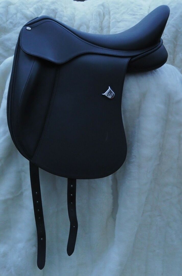 Siodło ujeżdżeniowe BATES Innova z CAIR - Kupiłam to siodło w 2020 roku dla mojej klaczy i nie używałam go ani razu, ponieważ zdecydowałam się na zakup siodła na zamówienie ze względu na trudną pozycję w siodle. Siodło było używane tylko 5 razy przez poprzedniego właściciela do jazdy próbnej i jest absolutnie tak dobre jak nowe! Ponieważ siodło jest już po prostu świetne, chciałem je zatrzymać. Ale teraz muszę tylko sprzedać trochę rzeczy dla koni, zanim piwnica się przepełni ;-) Szerokość wpustu można zmienić, wymieniając płytę wpustu. (obecnie płyta wpustu jest czarna). Oto opis ze strony Bates: Za tradycyjnym i eleganckim wyglądem siodła ujeżdżeniowego Bates kryje się najnowocześniejsza technologia. Pasy w kształcie litery V umożliwiają indywidualne ułożenie siodła na grzbiecie konia. Duże popręgi pozwalają na uzyskanie "idealnego" dosiadu ujeżdżeniowego. Noga leży dokładnie tam, gdzie powinna. Duże panele Cair rozkładają ciężar jeźdźca na grzbiet konia, zapewniając optymalną pozycję siodła przy minimalnym nacisku na konia. W tym siodełku, dzięki wymiennej płytce wpustowej, można je zawsze dopasować, nawet po wielu latach. Rośnie wraz z koniem i można go zakładać na różne konie. Wyposażone w innowacyjny system technologii siodła, siodło ujeżdżeniowe BATES oferuje najwyższy komfort dla Twojego konia i pomaga osiągnąć optymalną pozycję siedzącą - dla ukierunkowanych pomocy i bezpośredniego oddziaływania z idealną równowagą.