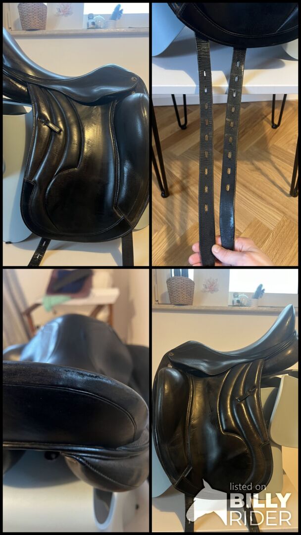 17,5 cala Odpowiednie dla krótkich koni według mojego rymarza Długość siodła 44 cm Długość klapy siodła 40 cm Szerokość kanału komory 7cm Szerokość komory 30 Dołączone rolki kolanowe 3/4 Mała skaza na górze (patrz zdjęcie), poza tym w dobrym stanie i bez uszkodzeń