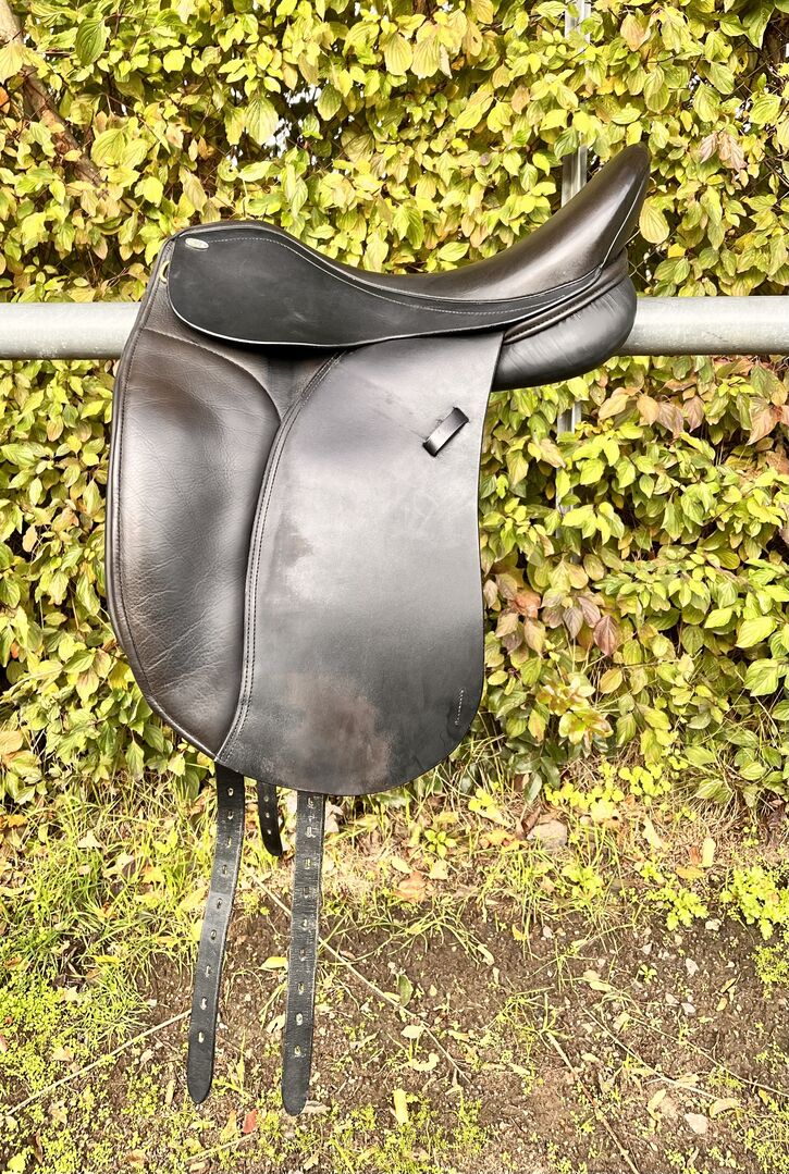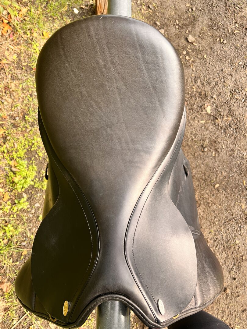 Oferuję siodło ujeżdżeniowe firmy Busse by solibel. Siedzisko 18er i komora 31er. Zostało kupione nowe w 2020 roku, a następnie wyściełane raz w 2022 roku przez rymarza. Nie było używane od listopada 2023 roku. Zawsze był zadbany i ma odpowiednio miękką skórę i niewiele śladów zużycia. Tylko po lewej stronie skóra jest lekko uszkodzona przez strzemiona, ale nie jest to bezpośrednio widoczne.