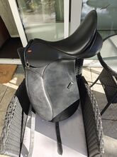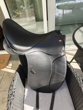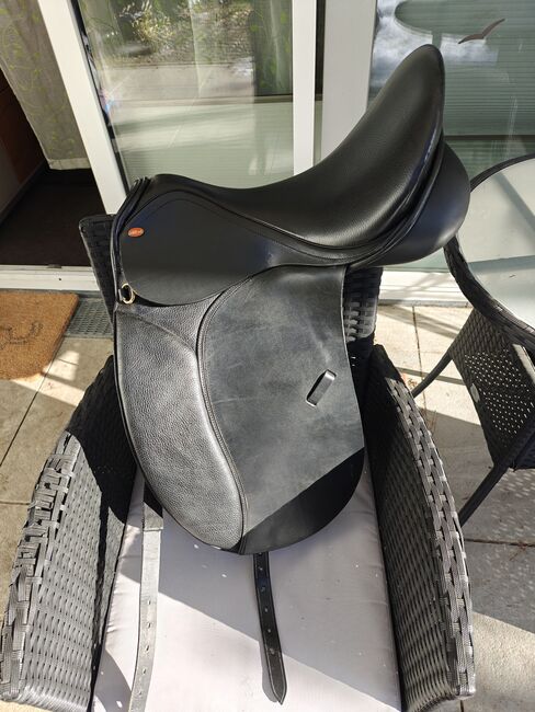 Siodło ujeżdżeniowe Busse Solibel Atlanta - Sprzedam nowe siodło ujeżdżeniowe firmy Busse model "Solibel Atlanta 2002" o rozmiarze siedziska 18 cali i szerokości komory ok. 33/34 cm. Było na koniu tylko raz, aby je przymierzyć, ale potem zdecydowałem się na inny model. Siodło jest odpowiednie dla szerszych koni z prostym grzbietem i niskim kłębiem, idealne również dla młodych koni do wsiadania, jest regulowane na zimno. Powierzchnia styku wynosi 44 cm.