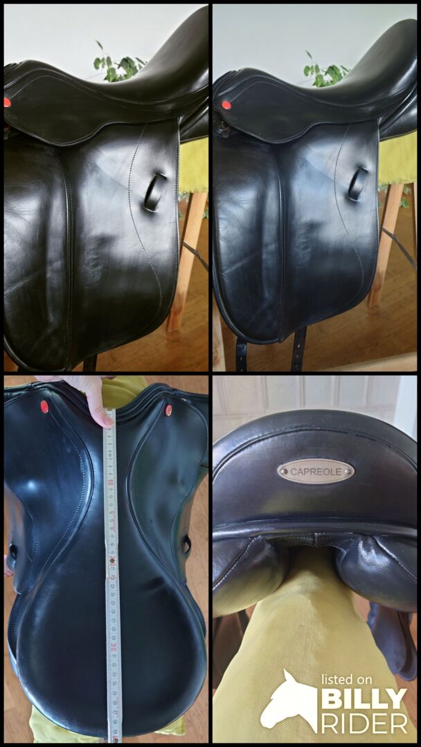 Siodło ujeżdżeniowe Capreole, 17 cali, czarne - Sprzedaję moje siodło ujeżdżeniowe firmy Capreole. Siodło jest dobrze wykonane i może być regulowane przez każdego rymarza. W zestawie znajdują się skóry do strzemion i strzemiona. Do zestawu można dołączyć również pasy pomocnicze. Odpowiednie dla koni z zakrzywionym grzbietem.
