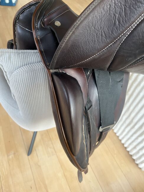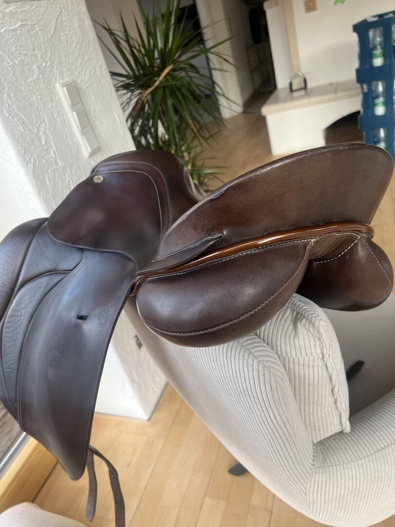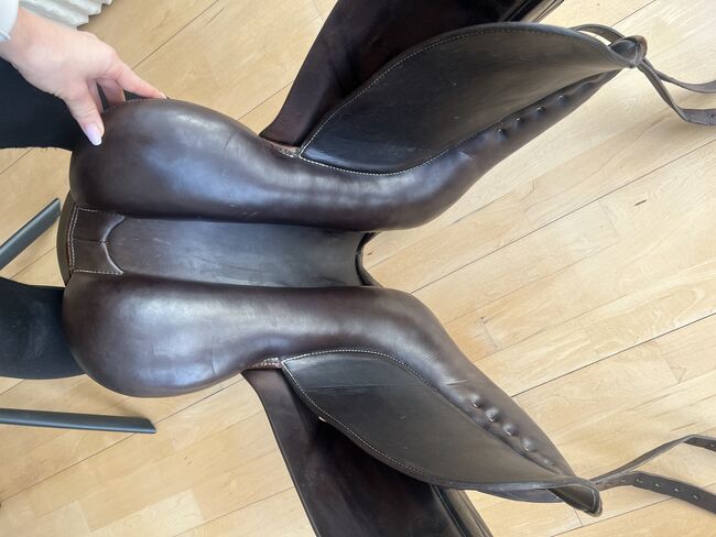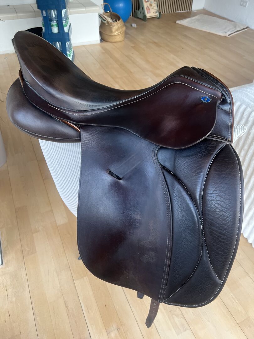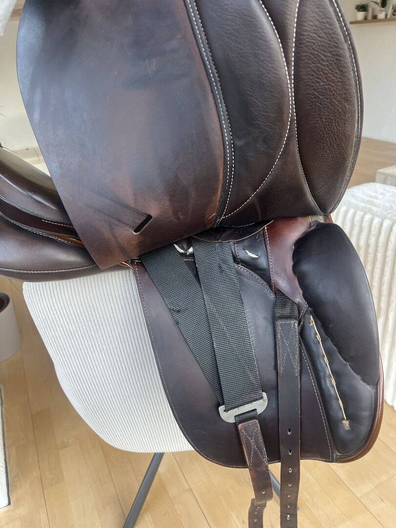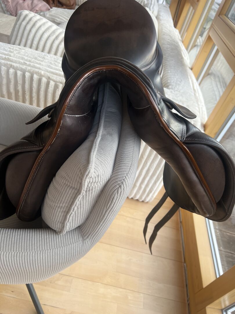 Siodło ma 8 lat i nadal jest w bardzo dobrym stanie: - Siedzisko: 17,5 cala - Średnia komora (32-33) - Skórzane strzemiona są wliczone w cenę - Podkładki pod siodło w zestawie