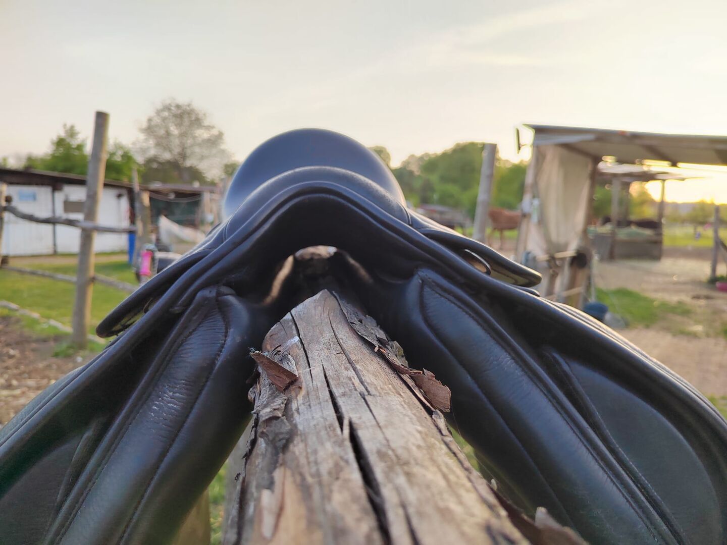 Siodło ujeżdżeniowe Claridge House Royal Comfort - Oferuję siodło ujeżdżeniowe marki Claridge House z serii Premium Royal Comfort w rozmiarze 17,5 cala. Niestety nie mogę go już używać ze względu na zmianę z dużego konia na kuca. Ma regulowaną szerokość komory i obecnie ma komorę 33 mm. Rolki kolanowe można regulować i trzymają się bardzo dobrze. Ma popręg w kształcie litery V i zachwyca miękką skórą i wygodnie wyściełanym siedziskiem.