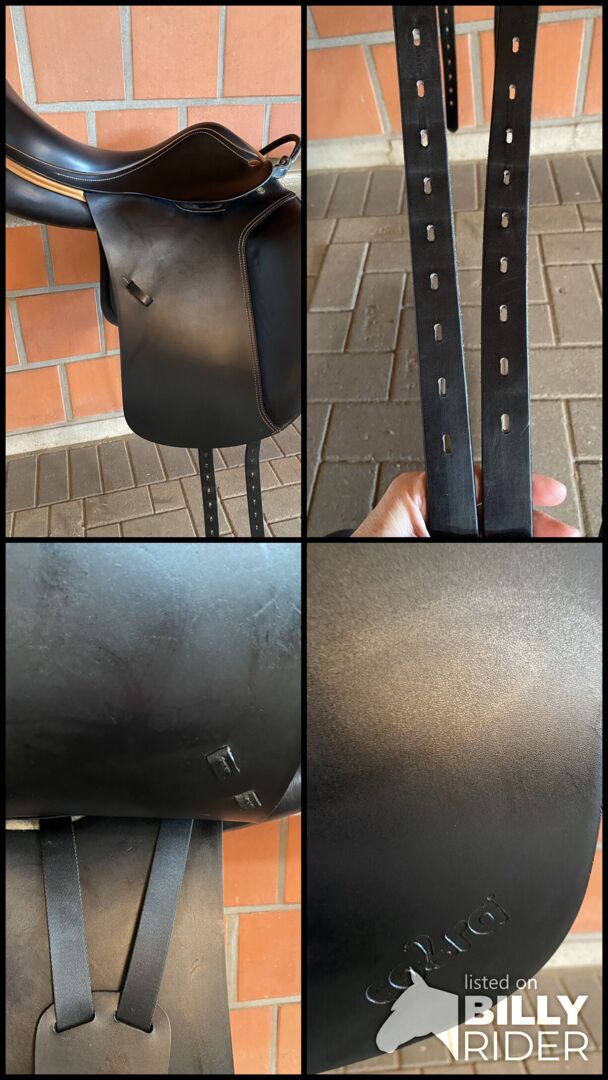 Siodło ujeżdżeniowe Cobra jak nowe - Sprzedaję moje siodło ujeżdżeniowe Cobra. Została zrobiona dla konia z dość prostym grzbietem, ale potem używana bardzo mało ze względu na chorobę i sprzedaż konia, jak widać. Rozmiar siedziska to 17,5. Jest to możliwość zdobycia prawie nowego siodła ( cena nowego 4200€) dość tanio. Cobra oferuje możliwość konsultacji z numerem siodła, czy siodło mogłoby pasować, a także serwis wtedy na miejscu. Jest to sprzedaż prywatna, nie udzielam żadnej gwarancji.