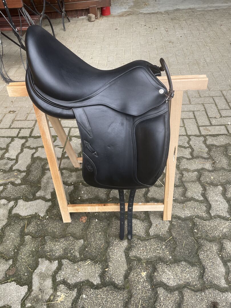 Szczegóły w skrócie - Marka/model: CWD SE08 - Siodło ujeżdżeniowe dla koni ciepłokrwistych / sportowych - Szeroki tył / 2XL PL - Wysokiej jakości skóra, wygodne siedzisko - Rozmiar siedziska: 17,5" - Wersja: 175 2XL PL - Kolor: czarny - Rok zakupu: 2020 - Nowa cena: € 3,500