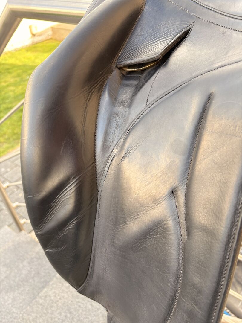 Siodło zostało wyprodukowane w 2018 roku i jest w dobrym stanie. Wykonane z delikatnej czarnej skóry bawolej, oferuje szczególnie dobre wsparcie i bardzo wygodne siedzisko. Model Makila Lab jest znany z bliskości konia i ergonomicznego dopasowania - idealny dla ambitnych jeźdźców ujeżdżeniowych.