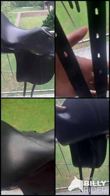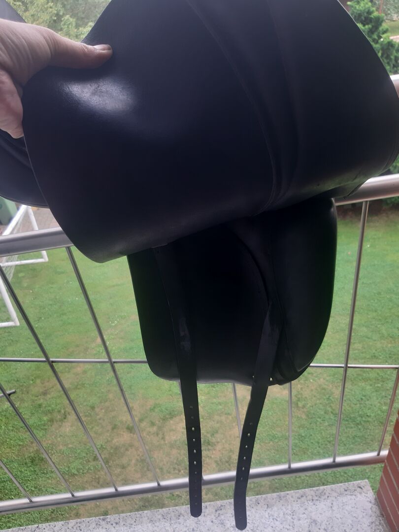 Siodło ujeżdżeniowe dla kucyków - Siodło Drssur dla kucyków lub dzieci 16,5 cala czarny Duże rolki kolanowe, głębokie siedzisko W doskonałym stanie bez wad. Właśnie ponownie tapicerowane i sprawdzone przez rymarza. To siodło już nigdy nie będzie pasować na naszego kuca po rozwoju mięśni. Dlatego tutaj na sprzedaż. Kupujący płaci cenę sprzedaży