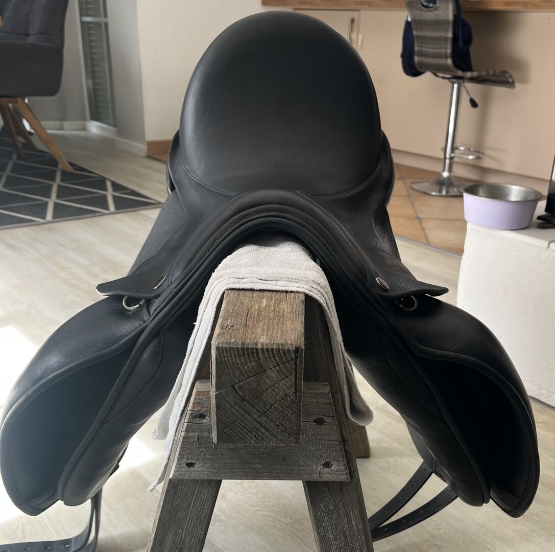 Siodło ujeżdżeniowe Dresch XT HH Flat High Verdades - Na sprzedaż w bardzo dobrym stanie siodło ujeżdżeniowe marki Dresch Model: XTHH Flat High Verdades 17,5" Rok produkcji: 06/22 Standardowa klapa Wstępnie uformowana klapa siodła Czarne z niebieską lamówką