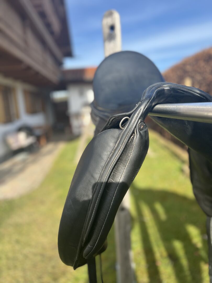 Siodło ujeżdżeniowe Elegance Nero od Preiss saddlery 17 cali - Z ciężkim sercem rozstaję się z naszym ukochanym siodłem ujeżdżeniowym "Elegance Nero" z zakładu rymarskiego Preiss. Siodło zapewnia super wygodne, głębokie siedzisko i zbliża do konia. Posiada klapę mono. Niestety nie jestem w stanie dokładnie określić jego wieku, ponieważ nie ma na nim nadrukowanego numeru seryjnego. Paski do popręgu zostały wymienione 2 lata temu, a 4 miesiące temu został wyściełany. Zawsze był zadbany i ma oznaki zużycia współmierne do jego wieku. Wysyłka z założeniem kosztów. Siodło nie zostanie wysłane do testów. Możliwe jest wypróbowanie siodła w promieniu 50 km od depozytu ceny zakupu i odbioru. Jest to sprzedaż prywatna. Gwarancja i zwrot są wykluczone. Płatność tylko bezpośrednim przelewem bankowym