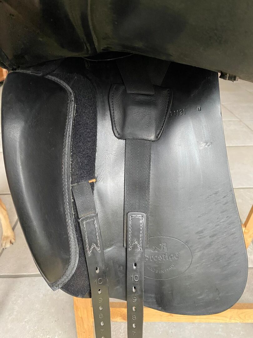 " Wykonane przez włoskiego producenta Prestige we współpracy z mistrzami rymarstwa Euroriding! Model ten gwarantuje optymalną swobodę ramion konia. Siodło oferuje pierwszorzędny komfort siedzenia dzięki wyjątkowo wąskiej talii i głębokiemu siedzisku. Objętość i stabilność panelu siodła zapewniają wygodny kontakt i maksymalną bliskość grzbietu konia. Z podwójnymi klapami siodła, atrakcyjną kontrastową wstawką na pętlach strzemion i dekoracjami na krawędzi kantara. Specjalnie zmodyfikowane paski do popręgu zapewniają, że panele zapewniają optymalne wsparcie, a siodło jest zrównoważone i delikatnie spoczywa na grzbiecie konia. Regulowane na rzepy łęki zapewniają jeźdźcowi maksymalną elastyczność. Szerokość kanału grzbietowego wynosi 6,5 cm. Popręg siodła jest wykonany z tworzywa sztucznego i jest bardzo łatwy w regulacji. Możliwe są również częstsze regulacje bez ograniczeń. Dożywotnia gwarancja na siodełko! (Uszkodzenia spowodowane wypadkiem wykluczone)"