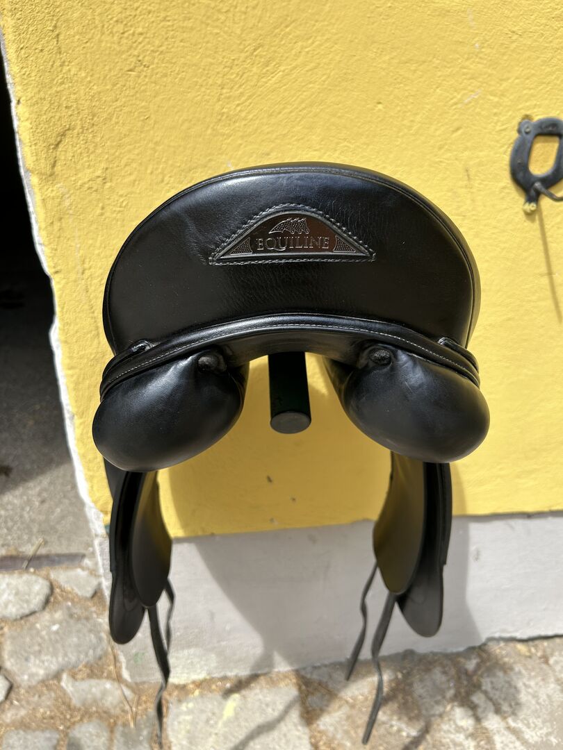 Siodło ujeżdżeniowe Equiline - Siodło ujeżdżeniowe Equiline - 17 cali szerokość siedziska L Stan bardzo dobry Pompony na rzepy Może być modyfikowane przez rymarza