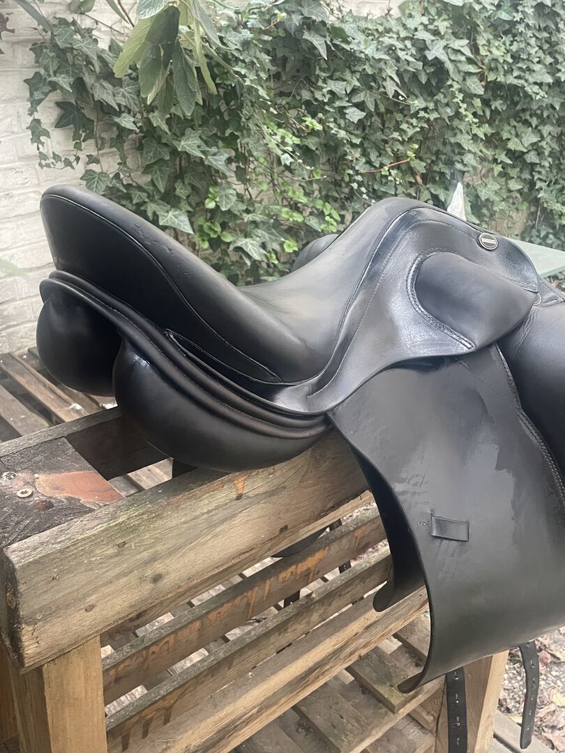 Siodło ujeżdżeniowe Erreplus Dressage 17,5 cala KW 33 SL - Erreplus Dressage 17 cali, szerokość komory 33 SL (Shoulderless) Regularnie konserwowane i sprawdzane przez rymarza Komora regulowana na zimno Szlachetny wygląd dzięki połączeniu gładkiej skóry i zamszu Siodło jest ogólnie w bardzo dobrym stanie, miękkie i równomiernie wyściełane Niestety ma małą skazę na siedzeniu, gdzie kot stajenny go podrapał, dlatego tanio sprzedam Cena podlega negocjacji i obejmuje podkładkę pod siodło Możliwa wysyłka!