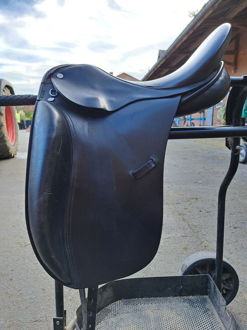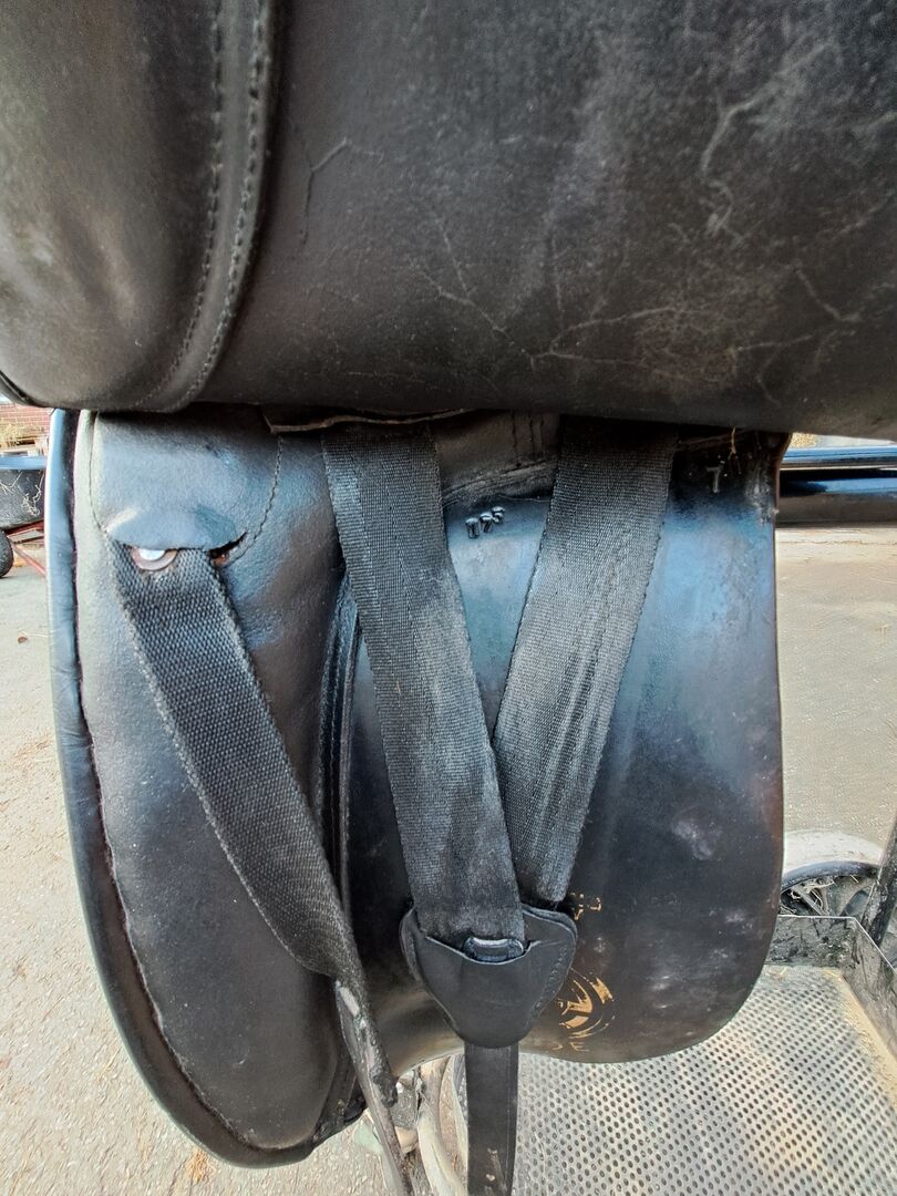Siodło ujeżdżeniowe Euroriding Jade2 - Sprzedam siodło ujeżdżeniowe Jade 2 firmy Euroriding. Siodło ma komorę 32 i zostało świeżo wyściełane w maju 24. Ma ślady zużycia, które nie przeszkadzają w jeździe, jak widać na zdjęciach. Zostało zamontowane na niemieckim kucyku. Paski do popręgu są w dobrym stanie. Sprzedaż prywatna, dlatego nie ma gwarancji, gwarancji i zwrotu.