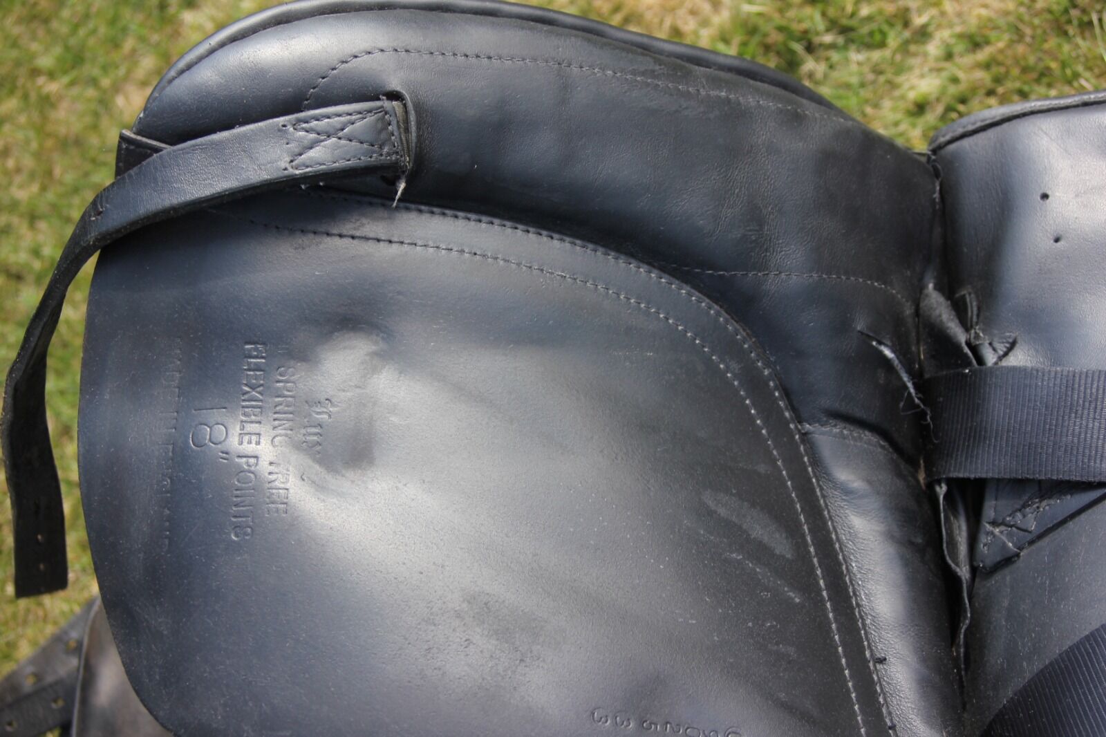 Kluczowe dane: Rozmiar siedziska: 18 cali Szerokość komory: patrz zdjęcie, może być regulowana przez rymarza Numer seryjny: P 0902533 Stan: bardzo dobrze utrzymany, kilka śladów zużycia, bardzo małe zadrapania na siedzisku