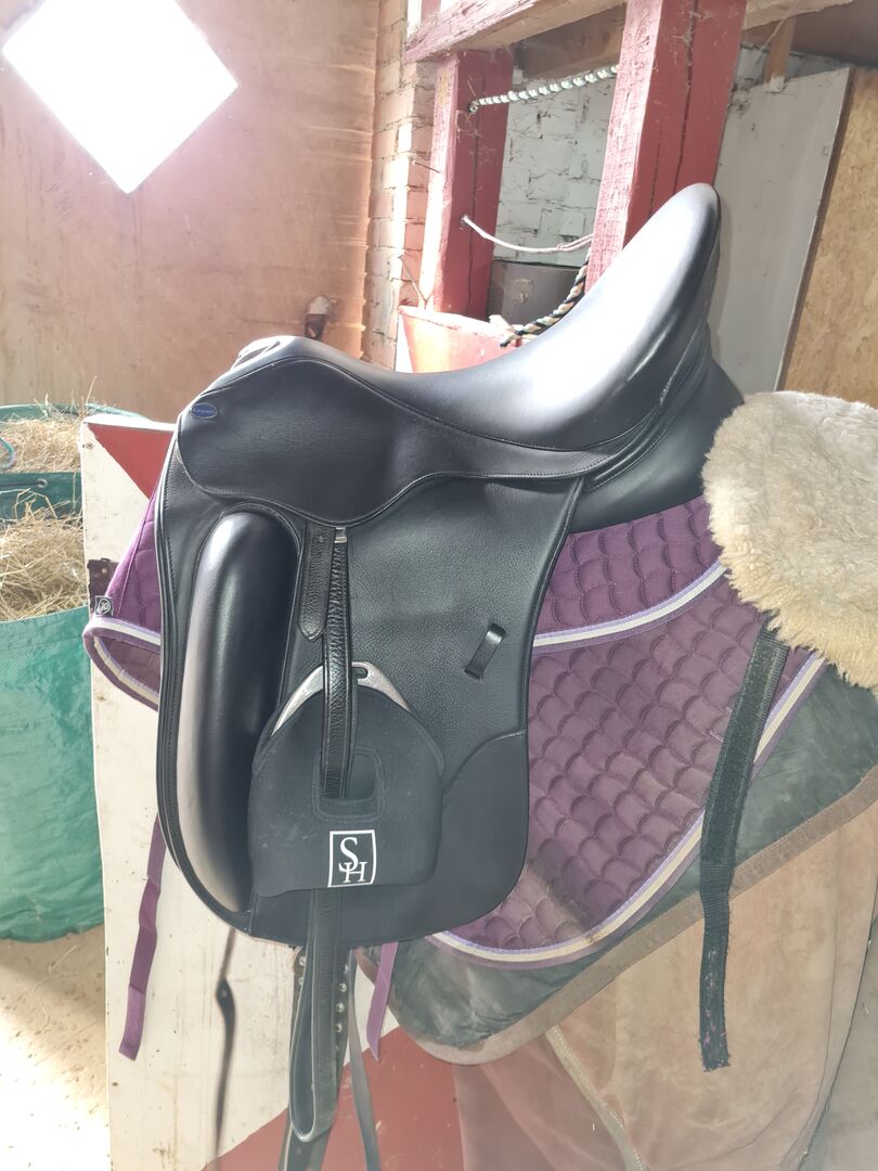 Siodło ujeżdżeniowe Euroriding Rebell 17,5 - Sprzedaję prawie nowe buty Euroriding Rebell w rozmiarze 17,5 cala i MW. Był na moim koniu 3 razy i jest jak nowy. Żadnych zadrapań, otarć, nic. Jest to siodło monoblatowe, dzięki czemu siedzi się blisko konia. Dzięki dużym pomponom zawsze dobrze trzyma się w każdej pozycji. Odpowiednie również dla koni krótkich. Używałem go na moim dużym wałachu rasy wb z dużą ilością łopatek i podudzi. Ma głębokie siedzisko i jest bardzo wygodny. Cena powyżej 2200 euro
