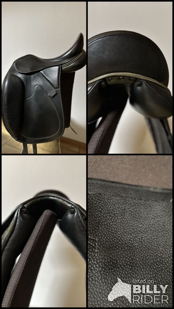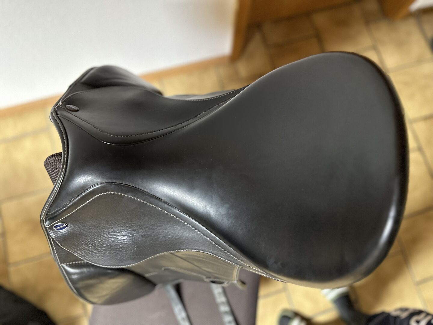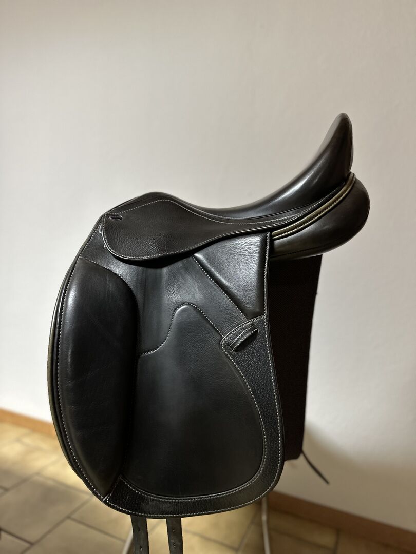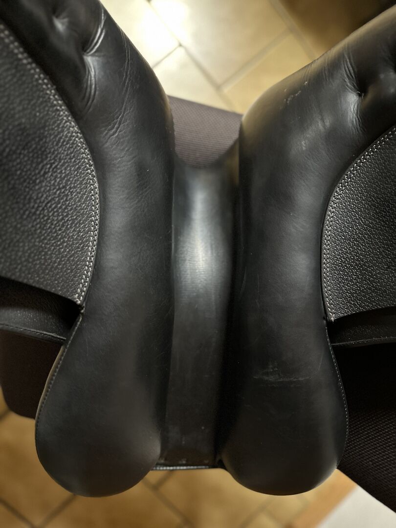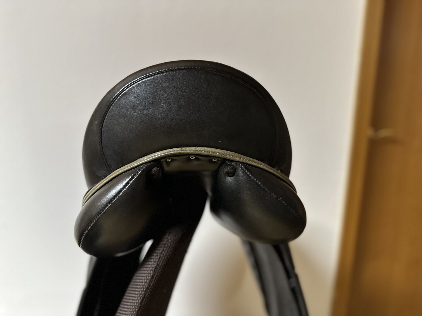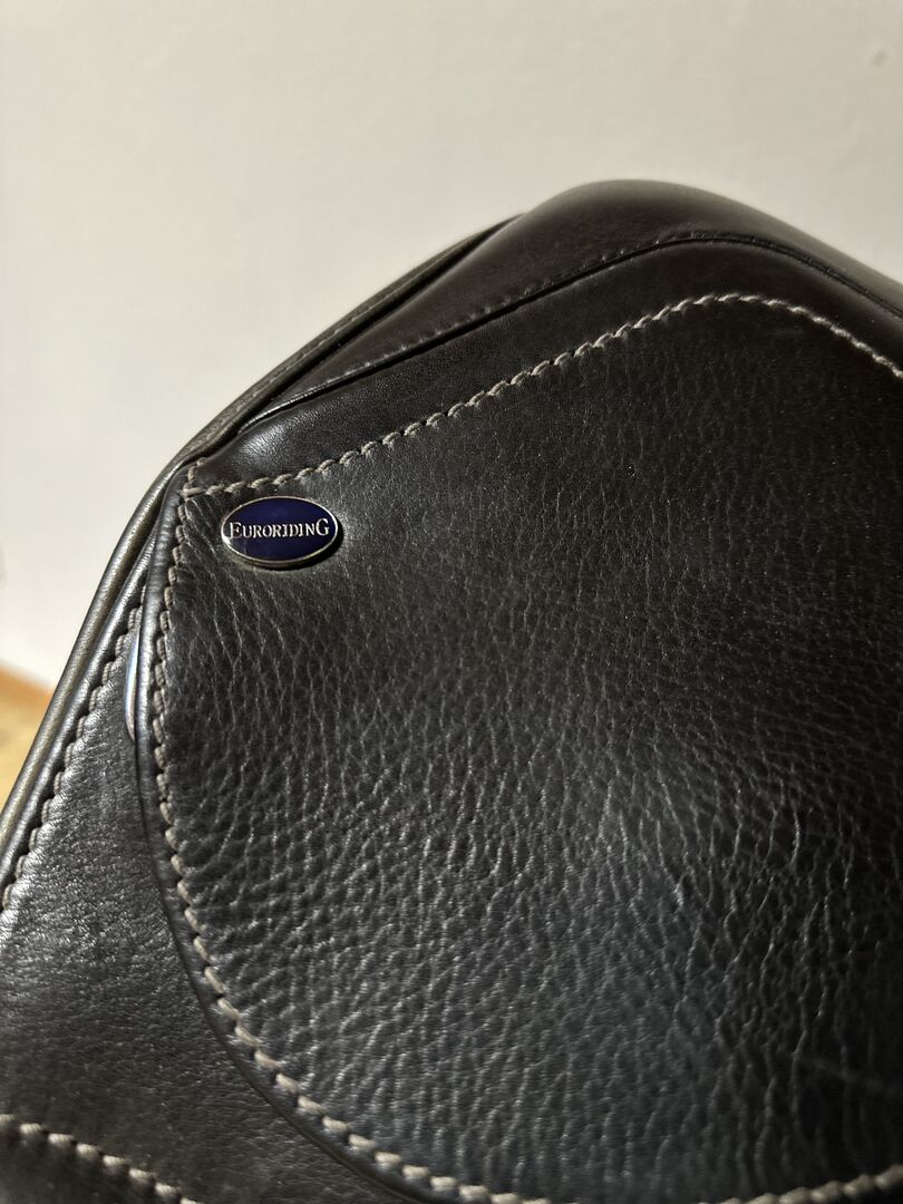 Siodło ujeżdżeniowe Euroriding Romolus 17" MW - Siodło ujeżdżeniowe Euroriding, model Romolus w 17" MW w kolorze czarnym z szarymi detalami. Siodło nie było używane przez 1,5 roku, zawsze traktowane z troską i przechowywane w ciepłym i suchym miejscu. Siodło zostało wyściełane na krótko przed tym, jak przestało być potrzebne.