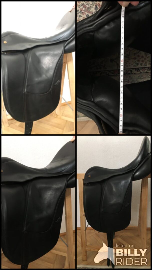 Siodło ujeżdżeniowe Fichtbauer Tentazione 18,5" - Bardzo wygodne siodło ujeżdżeniowe. Głębokie siedzisko, świetna pozycja nóg, miękkie dla konia i jeźdźca, wykonane ręcznie. Siodło nie nosi śladów zużycia, zawsze było zadbane i regularnie wyściełane. Paski do popręgu są w idealnym stanie. Dużo miejsca na ramiona dzięki wyciętej klapie siodła, szerokiemu kanałowi kręgosłupa i górnym panelom siodła zapewniającym szeroki i miękki kontakt.
