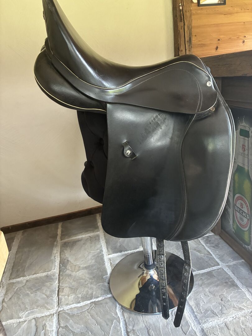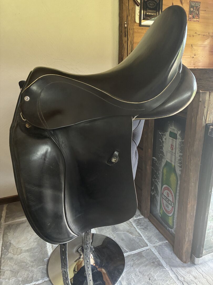Siodło ujeżdżeniowe German Saddlery 18" - Sprzedaję moje 18-calowe siodło dt Saddlery z prawdziwej skóry. Kupiłem je używane 3,5 roku temu od rymarza za 800 euro dla mojego Lipizzanera. Niedawno zostało ponownie tapicerowane i używane dla mojego Tinkera. Sprzedaż z powodu nowego zakupu. Możliwe oglądanie.