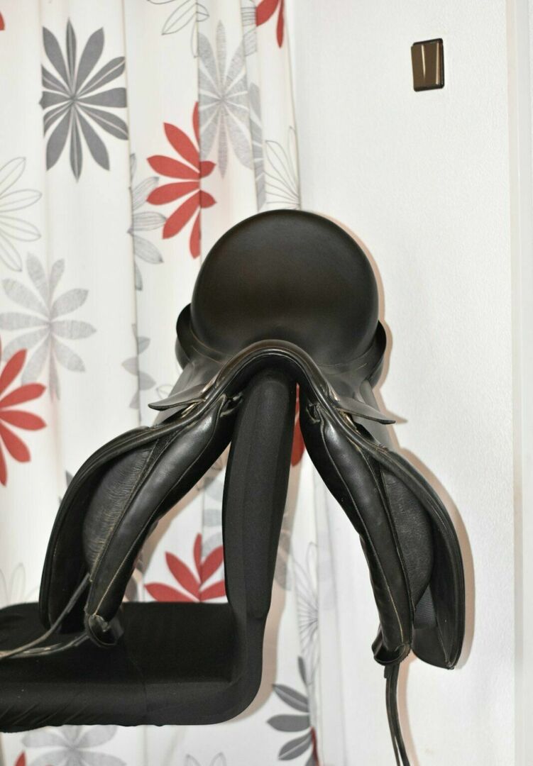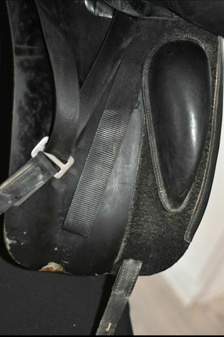 Siodło było zawsze traktowane z wielką troską, a ostatni raz było sprawdzane przez rymarza miesiąc temu. Niestety mój kucyk już z niego wyrósł. Idealnie nadaje się dla koni krótkich! Oczywiście w zestawie znajduje się oryginalna faktura z kwietnia 2013 r. na kwotę 1650 EUR. Siodło jest używane w bardzo dobrym stanie. Tylko jeden szew na klapie siodła jest nieco luźny (patrz zdjęcie), ale według rymarza można go bez problemu zszyć.