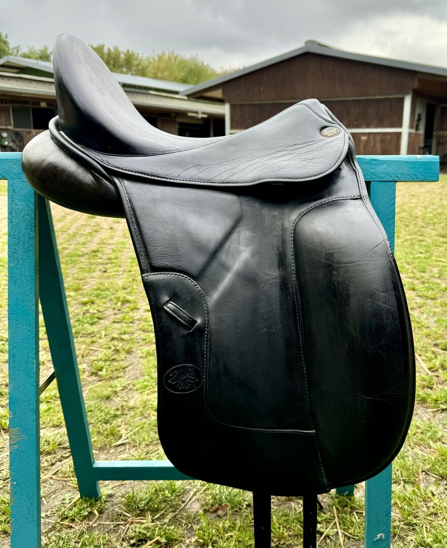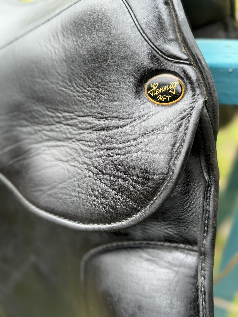 Siodło ujeżdżeniowe Hennig 17,5 cala z łękiem MFT - Mega wygodne siodło ujeżdżeniowe Hennig na sprzedaż z powodu redukcji rozmiaru klapa mono Lakier na jedenastce Głębokie siedzisko Zobacz zdjęcia Paypal dostępny Możliwa wysyłka Brak możliwości zwrotu Brak gwarancji Brak gwarancji