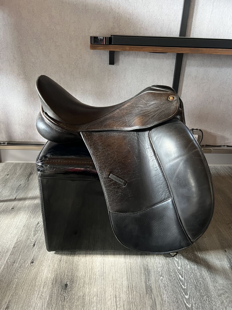 Siodło było u rymarza tylko we wrześniu ubiegłego roku, zostało sprawdzone i ponownie wyściełane za 350 euro. Grzbiet jest nienaruszony i wszystko jest w idealnym stanie. Wyściółka jest nadal bardzo miękka, więc można go używać od razu. Siodło spędziło ostatnio dużo czasu w ciepłym, ogrzewanym pomieszczeniu i było rzadko używane od ostatniego rymarza we wrześniu 2024 roku.