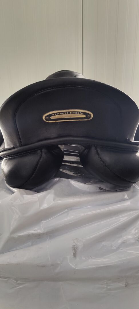 Siodło ujeżdżeniowe Hennig, bardzo wygodne i świeżo odnowione - Sprzedam bardzo wygodne siodło ujeżdżeniowe Hennig z głębokim siedziskiem i długim klapą.