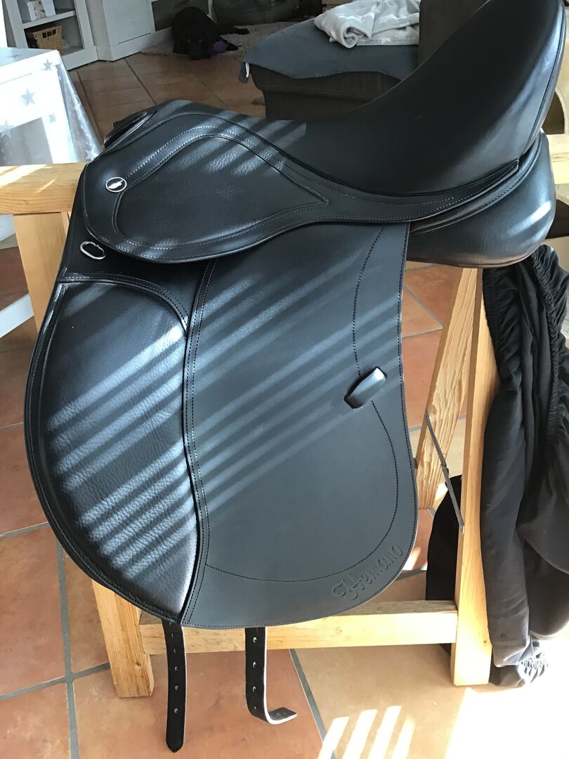 Siodło ujeżdżeniowe Hermano - Na sprzedaż jest używane, nowo zaprojektowane siodło ujeżdżeniowe z półgłębokim siedziskiem - specjalnie dla naszych popularnych "szerokich" typów koni. Specjalnie opracowany łęk został zaprojektowany tak, aby spełniać nowoczesne wymagania w zakresie komfortu siedzenia. Dzięki regulacji szerokości płyty grzbietowej, siodło oferuje optymalne warunki do efektywnego dopasowania do konia. Wypełnione wełną, krótkie panele z odpowiednio szerokim kanałem zostały opracowane w celu zoptymalizowania swobody ruchu konia.