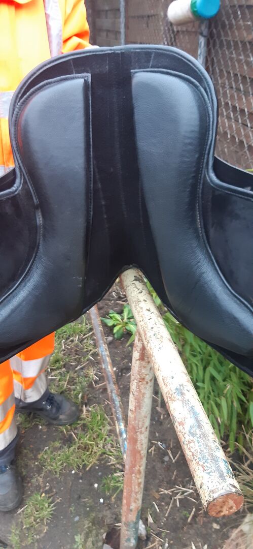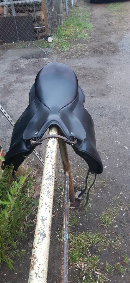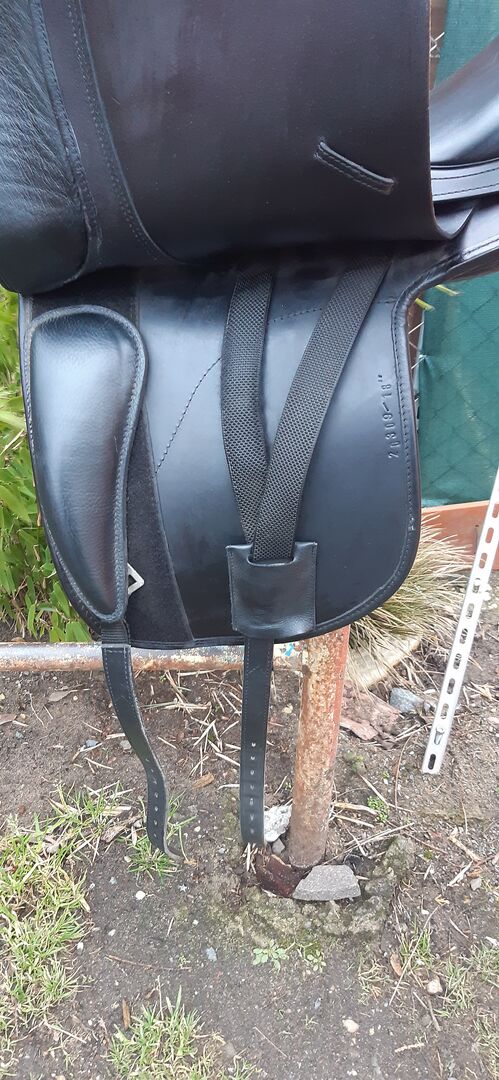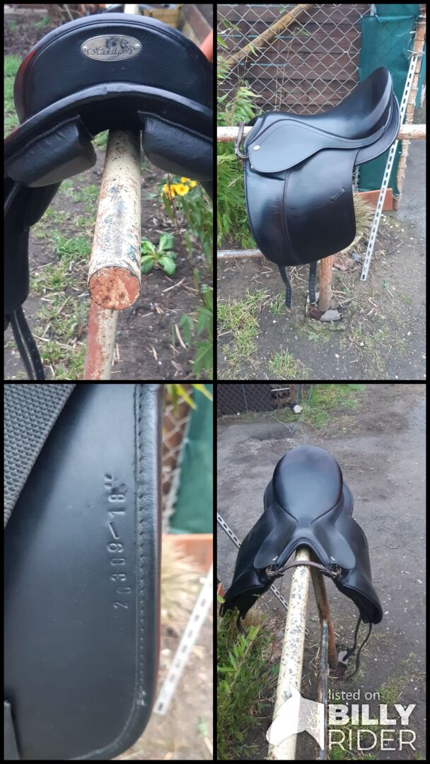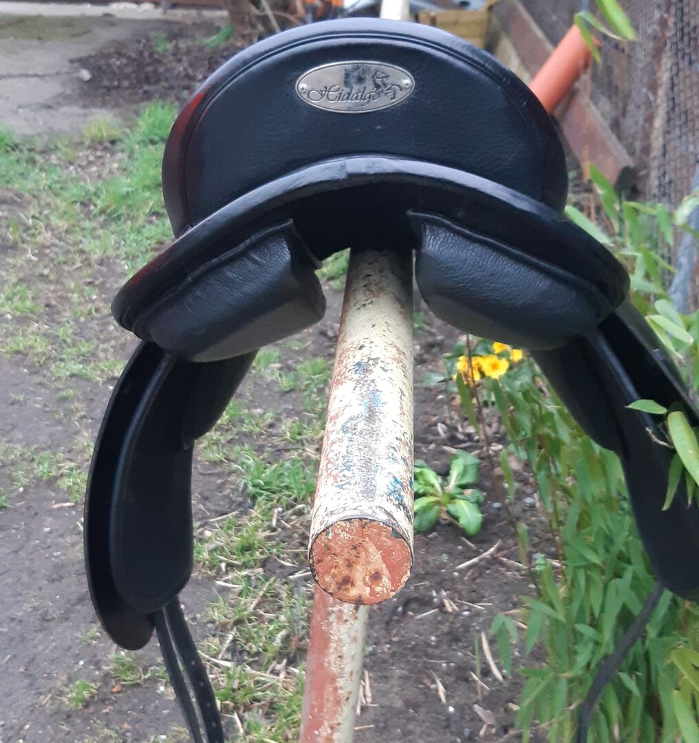 Siodło ujeżdżeniowe Hidalgo 18 cali - Sprzedam siodło ujeżdżeniowe Hidalgo Venice Speziale 18 cali w kolorze czarnym z panelami na rzepy styl 2, 46 cm 4/4/4, kupione w 2020 r. Posiada drobne ślady użytkowania, ale nie wpływają one na funkcjonalność siodła.