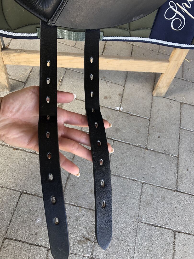 Niestety siodło nie pasuje na moje konie, w przeciwnym razie nie rozstawałabym się z tym wspaniałym i wygodnym siodłem. Siedzisko 17,5". Szerokość komory może być zmieniana przez rymarza, obecnie wynosi 31 Paski klinowe są w doskonałym stanie. Sprzedawane bez podkładki pod siodło.