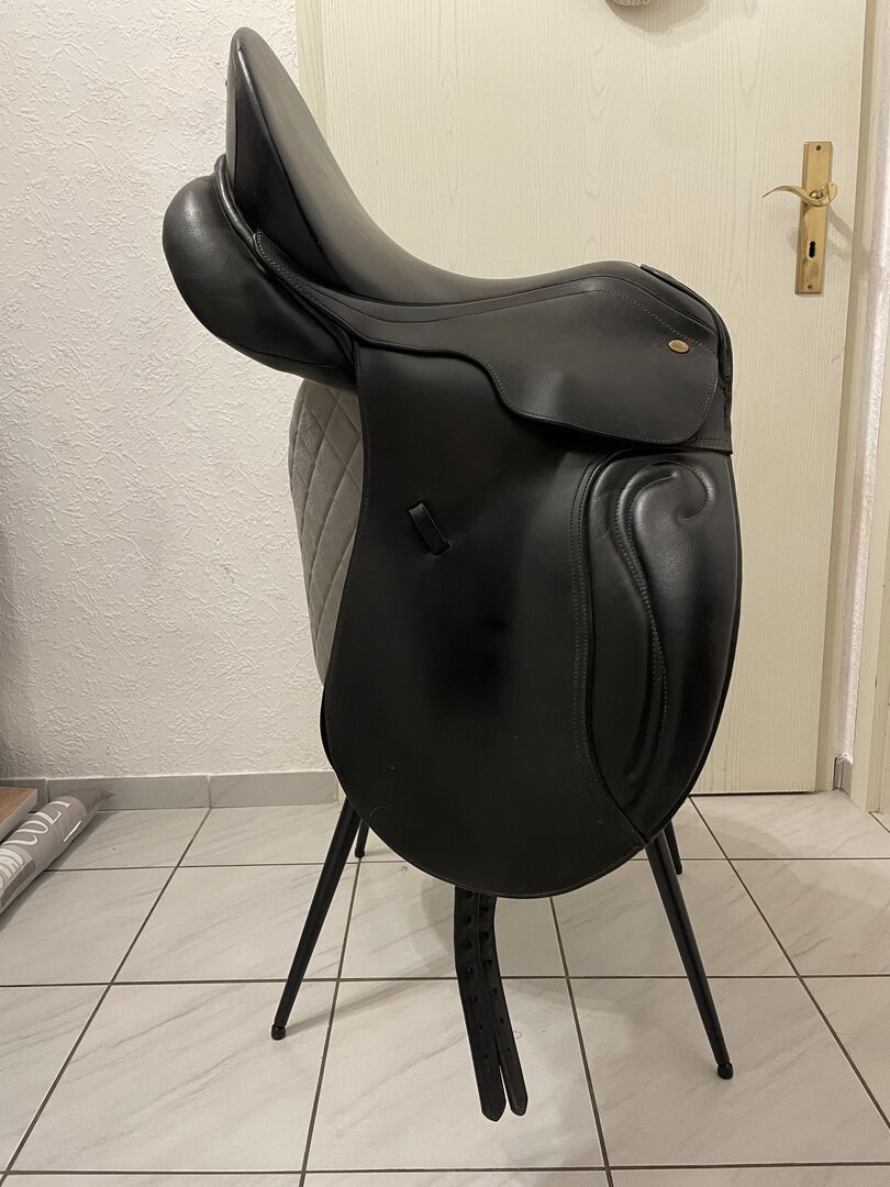 Siodło ujeżdżeniowe, Horse and Passion by Kiefer, KW 37, panele francuskie - Oferuję moje siodło ujeżdżeniowe od horse and passion, ponieważ nie pasuje już na moją klacz. Zostało przerobione na KW 37, ale może być dostosowane przez każdego rymarza. Nie mogę powiedzieć ile ma lat, kupiłam je z drugiej ręki. Jedna klapka na strzemiona jest rozdarta, ale można ją łatwo naprawić, poza tym jest w dobrym stanie.