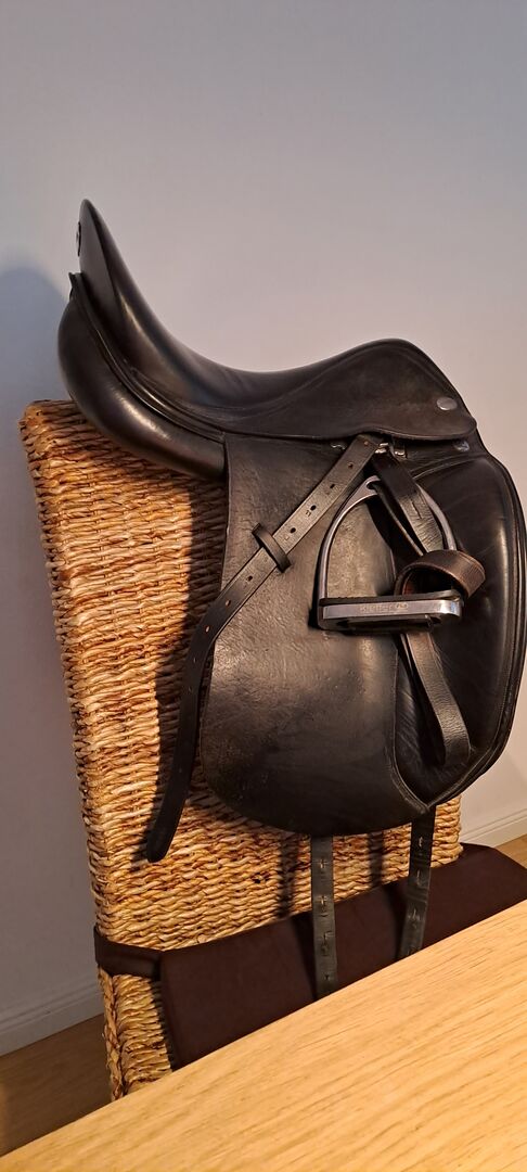 Siodło ujeżdżeniowe Jaguar / Harry Dabbs - Na sprzedaż siodło ujeżdżeniowe Jaguar firmy Harry Dabbs w rozmiarze 17 cali. Z panelami bananowymi dla koni i kucyków z krótkim grzbietem. Używane, ale w dobrym stanie. Skóra nie jest już wszędzie głęboko czarna, w niektórych miejscach ma brązowawy połysk, powinno być to również widoczne na zdjęciach.