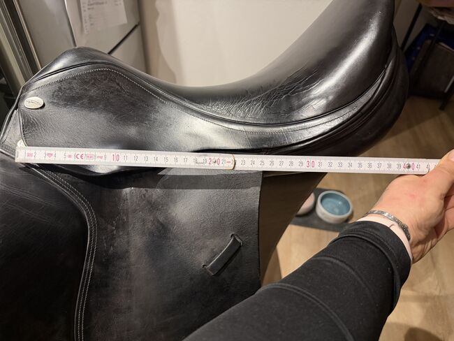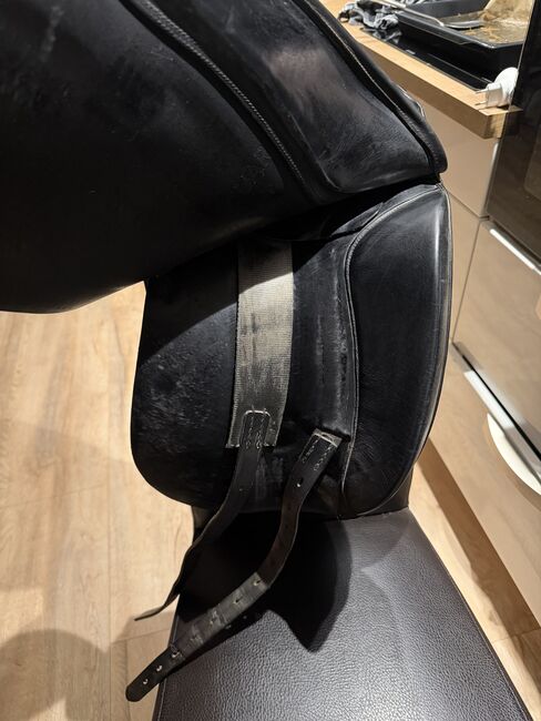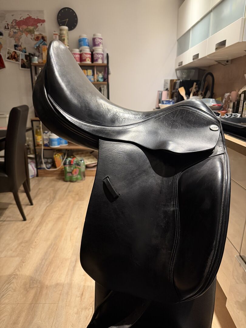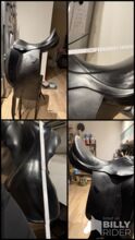 Siodło ujeżdżeniowe Jaguar XKC, 18, Harry Dabbs - Na sprzedaż używane, ale dobrze zachowane siodło ujeżdżeniowe Jaguar Harry Dabbs, model XKC w rozmiarze 18 cali. Siodło ma powierzchowne pęknięcia skóry na siedzisku, ale poza tym jest w doskonałym stanie! Doskonale nadaje się dla koni z krótkim obszarem kontaktu, ponieważ bardzo wcześnie wychodzi z grzbietu dzięki francuskim panelom.