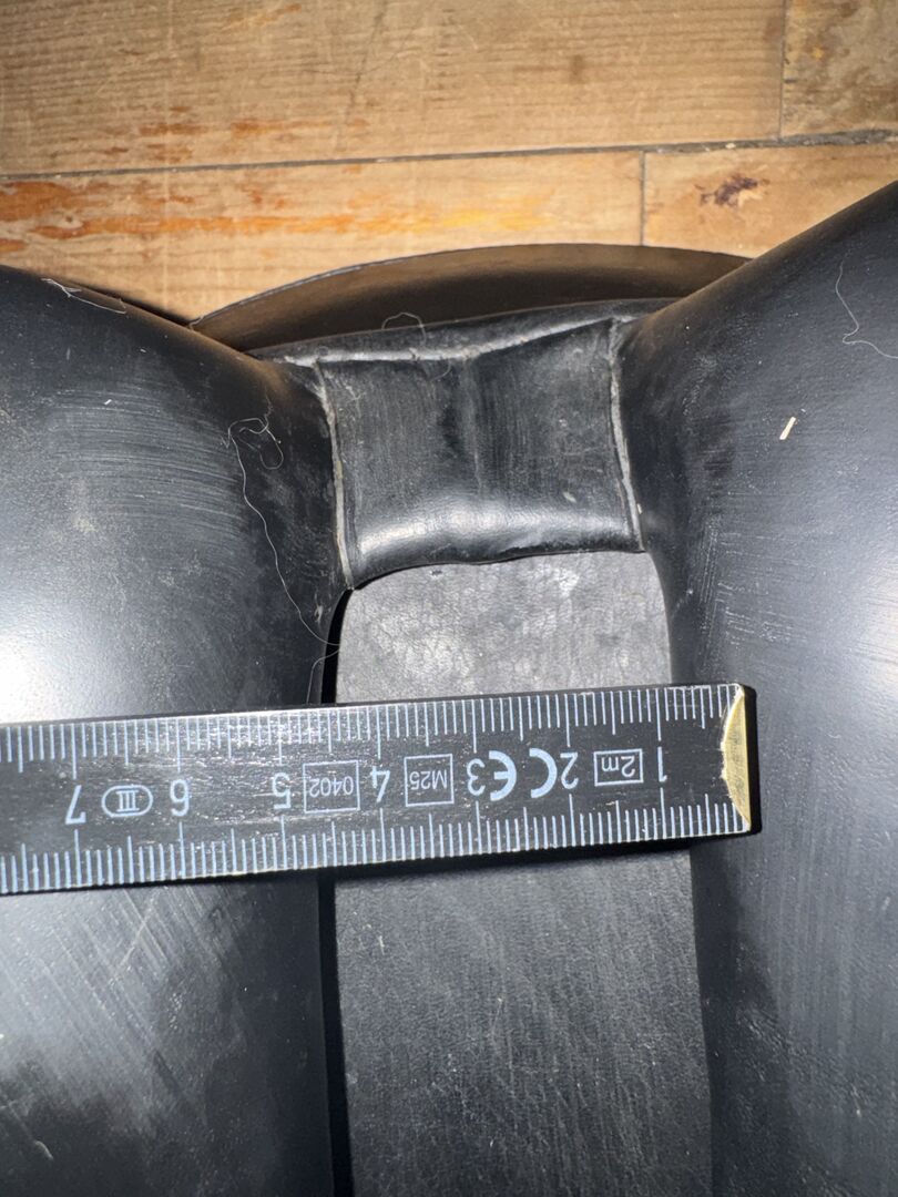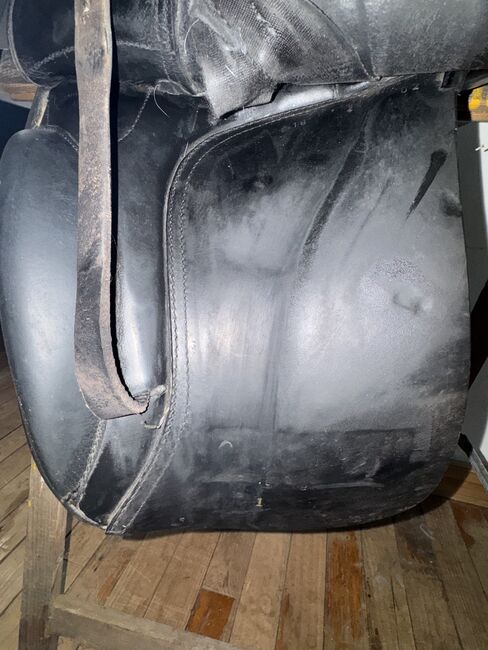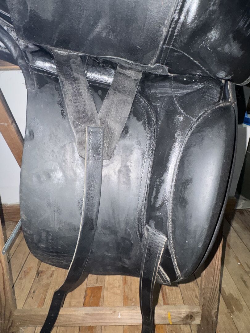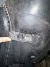Niestety, siodło wykazuje również kilka śladów użytkowania, są różne zadrapania na górze tylnego łęku (młodzieniec niestety dostał się do niego i przetestował zęby w skórze), a także zadrapania na siedzisku i klapie siodła, ale nigdy mi to nie przeszkadzało. Prowadnica paska pod lewą klapą siodła jest luźna, ale nigdy jej nie używałam. Same paski są w idealnym stanie.