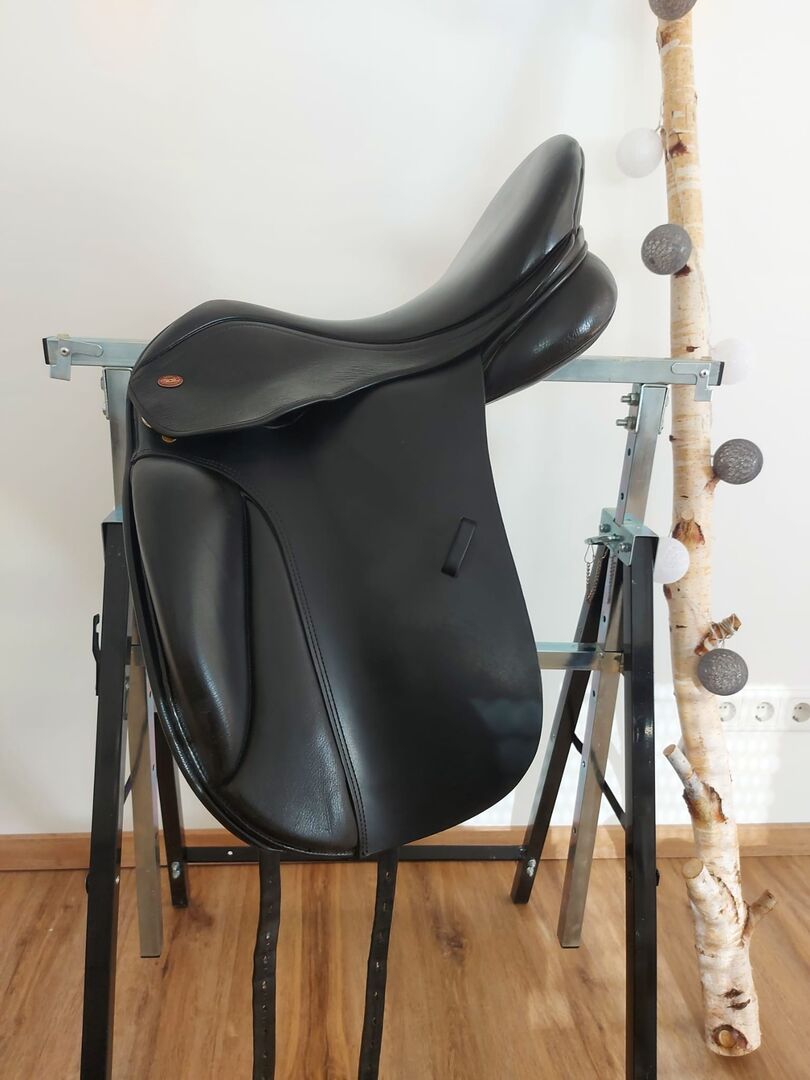 Zostało kupione z drugiej ręki w 2022 roku. Siodło jest w dobrym stanie, bardzo wygodne do siedzenia i lubię go używać, ale jego środek ciężkości nie pasuje do konia.