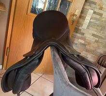 Siodło ujeżdżeniowe Kent i Masters 17,7-18 cali - Na sprzedaż bardzo dobrze utrzymane siodło ujeżdżeniowe 17,5-18 cali, które zawsze było przechowywane w suchym miejscu w szafce na siodła w garażu na szynie. Powierzchnia siedziska 43 cm, klapa siodła 50 cm Zostało całkowicie przerobione ok. 1,5 roku temu i jest bardzo wygodne. Było regularnie sprawdzane przez rymarza. Oczywiście są ślady użytkowania tam, gdzie były strzemiona, a także w kilku innych miejscach. Ale nic nie jest uszkodzone, tylko skóra jest trochę matowa. Z tyłu siodła znajduje się małe otarcie Są dwa rzepy kolanowe, z których jeden jest lekko uszkodzony. Nie przeszkadzało mi to, ale można je łatwo kupić ponownie. Ma wymienne wpusty, które można zmienić za pomocą sześciu śrub. Obecnie zamontowany jest żółty gullet, ale jest też pomarańczowy i biały. Cena wysyłki wynosi około 25 € Możliwa płatność Paypal Siodło można zabrać za kaucją w wysokości pełnej ceny zakupu. W razie jakichkolwiek pytań proszę o kontakt