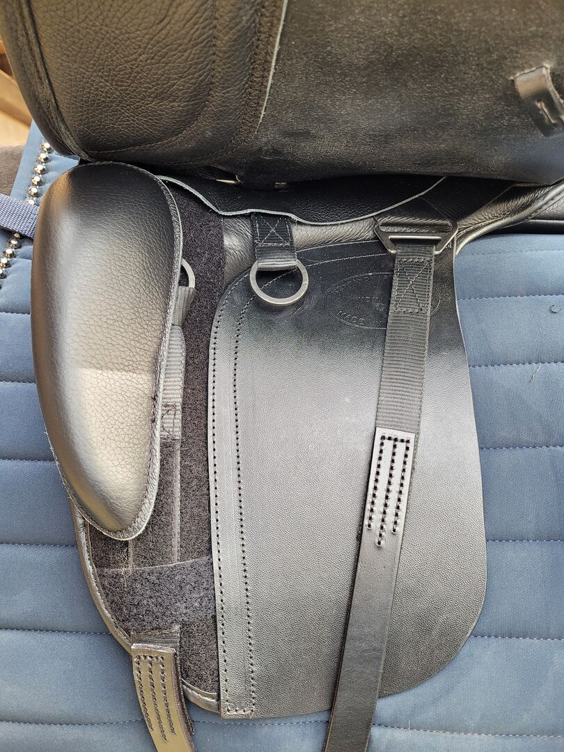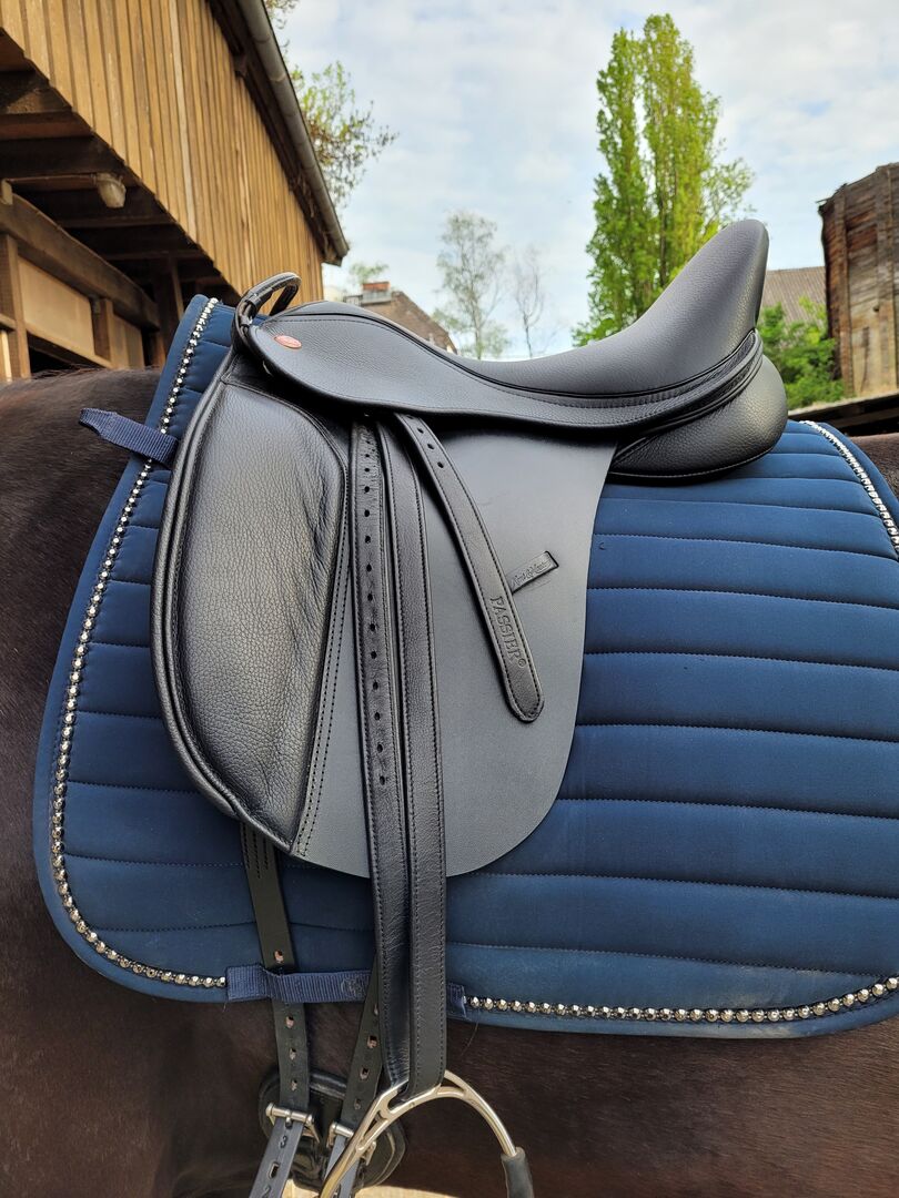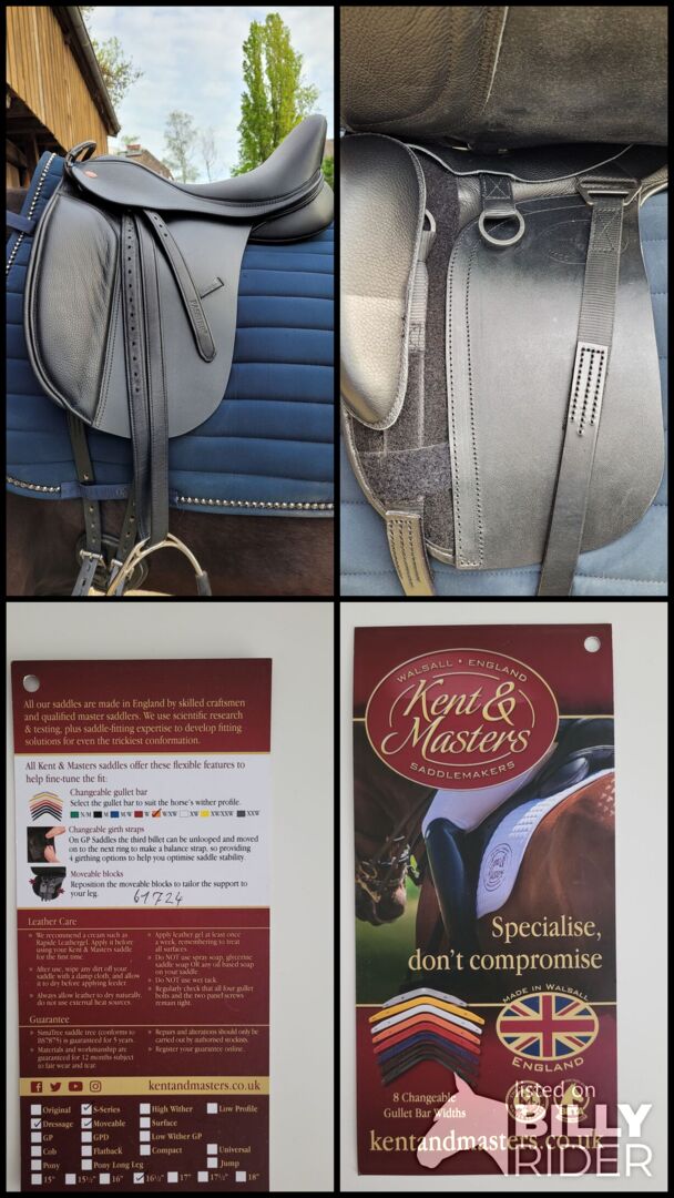 Siodło ujeżdżeniowe Kent&Masters - Sprzedam nowe siodło ujeżdżeniowe firmy Kent&Masters. Siodło było założone na konia tylko 5 razy. Siodło jest sprzedawane, ponieważ rozmiar siedziska jest za mały dla jeźdźca. Siodło posiada ruchome popręgi. Paski do popręgu również mogą zmieniać swoje położenie. Płytę pęcinową można zmieniać niezależnie.