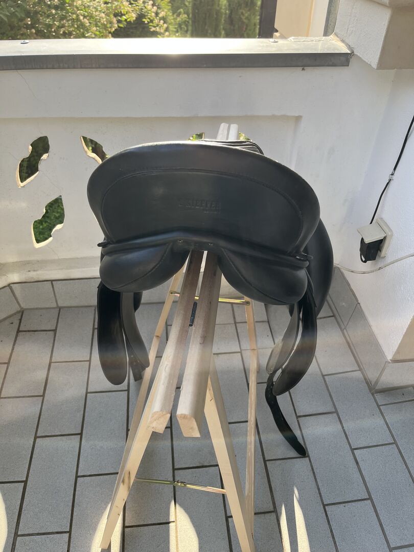 Siodło ujeżdżeniowe Kieffer 17,5" - Używane siodło ujeżdżeniowe. Kupiłam je w 2025 roku, zostało wyściełane przez rymarza w 2024 roku. Niestety nie pasuje na mojego konia. Strzemiona, popręgi i popręg są nowe z FB.