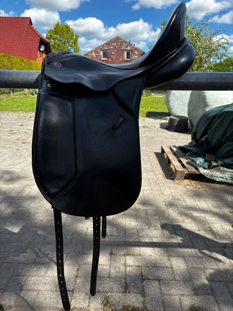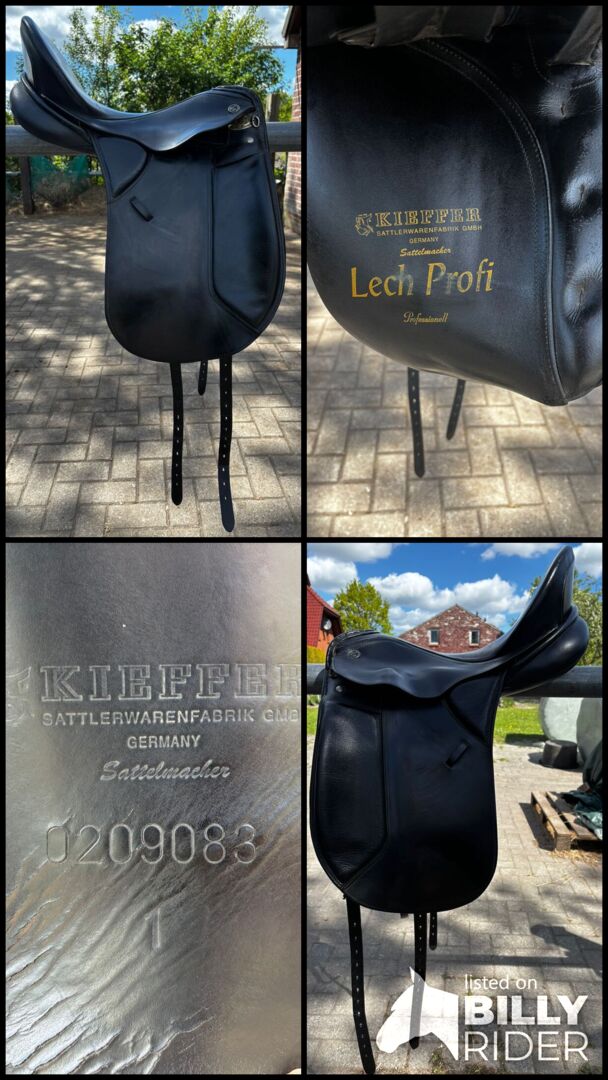 Siodło ujeżdżeniowe Kieffer - Sprzedaję siodło ujeżdżeniowe Kieffer model Lech Profi z siedziskiem w rozmiarze 17 cali. Siodło zostało wyprodukowane w 2002 roku i jest w dobrym stanie pomimo swojego wieku dzięki regularnej pielęgnacji. Oczywiście na siodle widoczne są zwykłe ślady użytkowania (patrz zdjęcia), a w jednym z pasków popręgu została wyrwana dziura, którą należy naprawić. Siodło ma wysoki obszar wpustu, nie ma płyty wpustowej i dlatego w razie potrzeby wymaga modyfikacji termicznej.